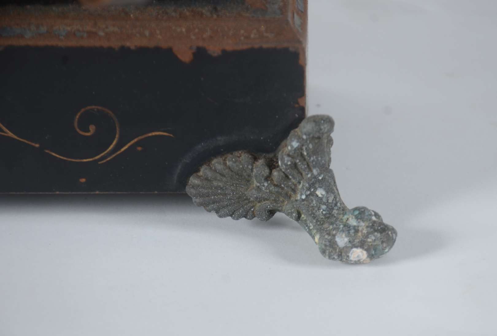 Porta jóias de porcelana francesa com flores em policromia pintadas á mão, guarnição de bronze.