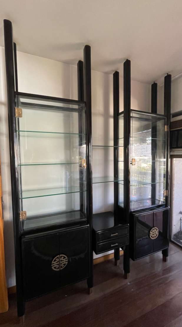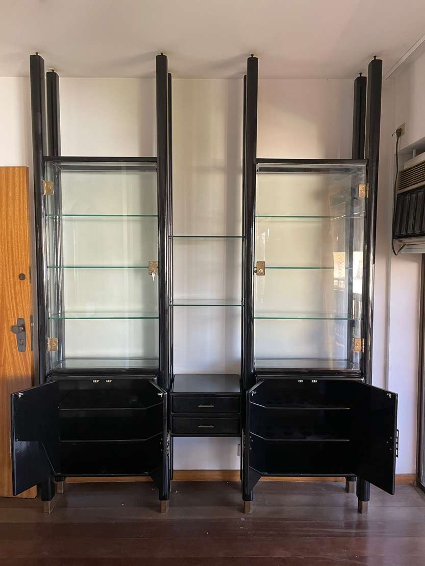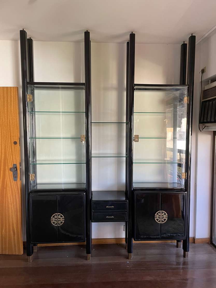 Armário de madeira nobre, estilo colonial brasileiro. Parte inferior com tampo frontal articulado, alçada com duas po...