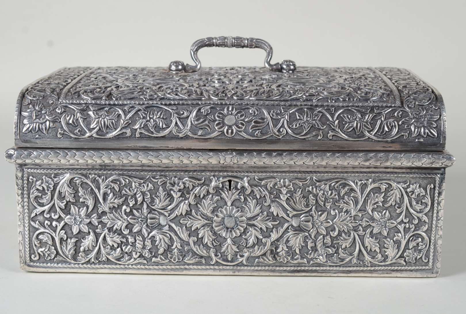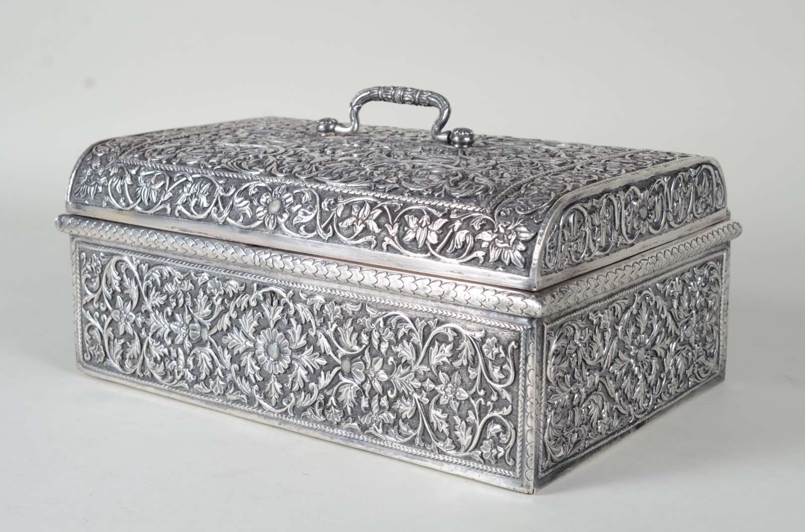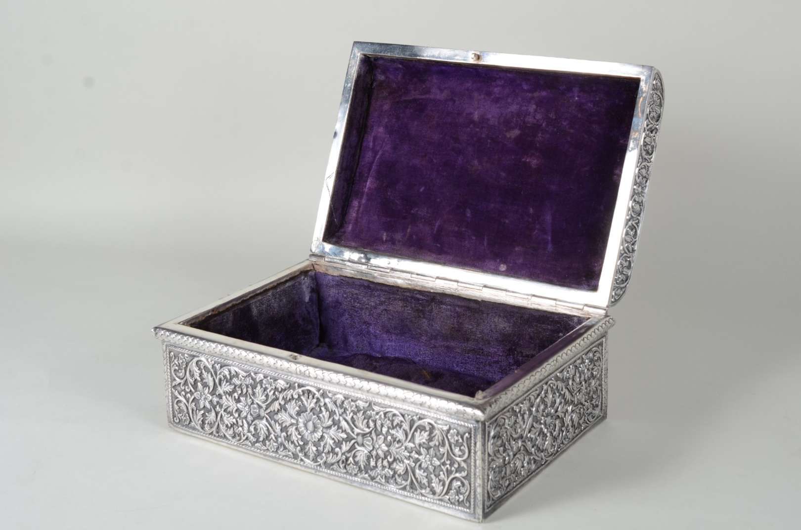 Porta jóias de porcelana francesa com flores em policromia pintadas á mão, guarnição de bronze.