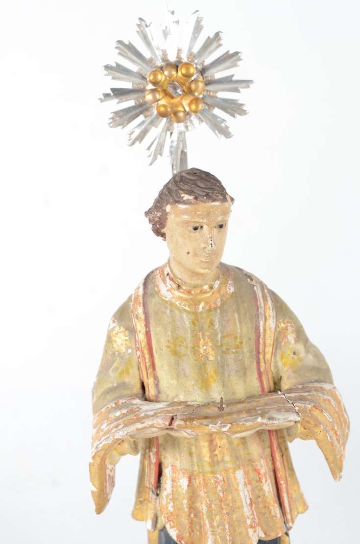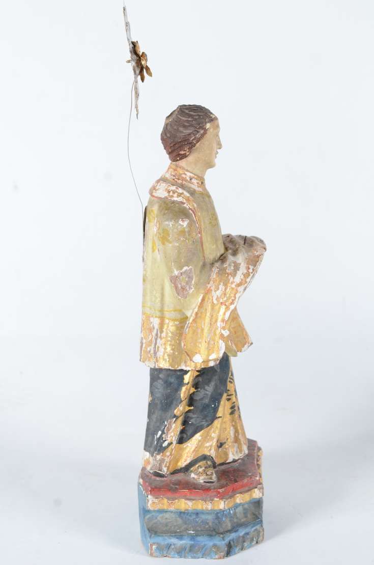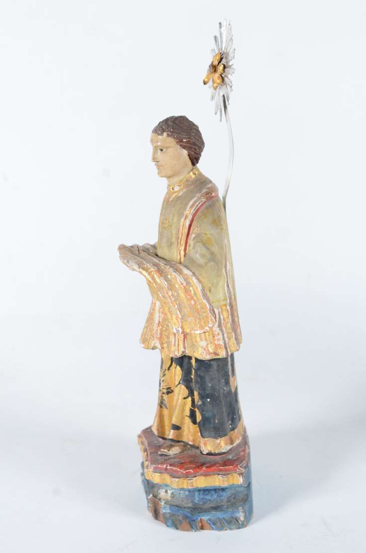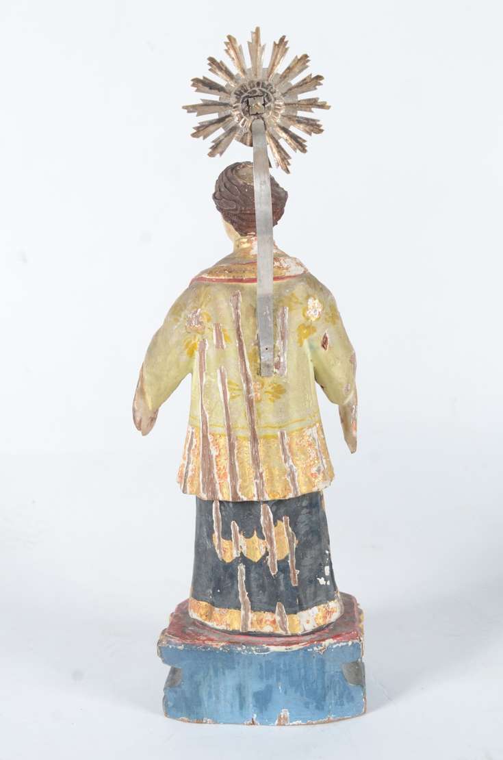São Jose sem menino - Antiga imagem de madeira policromada, resplendor de metal.