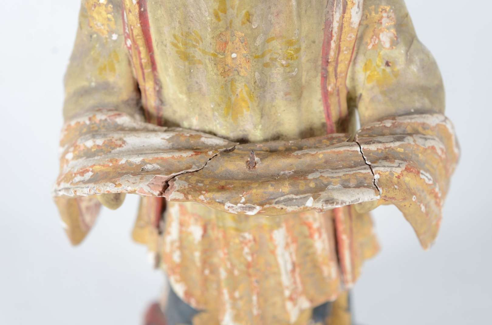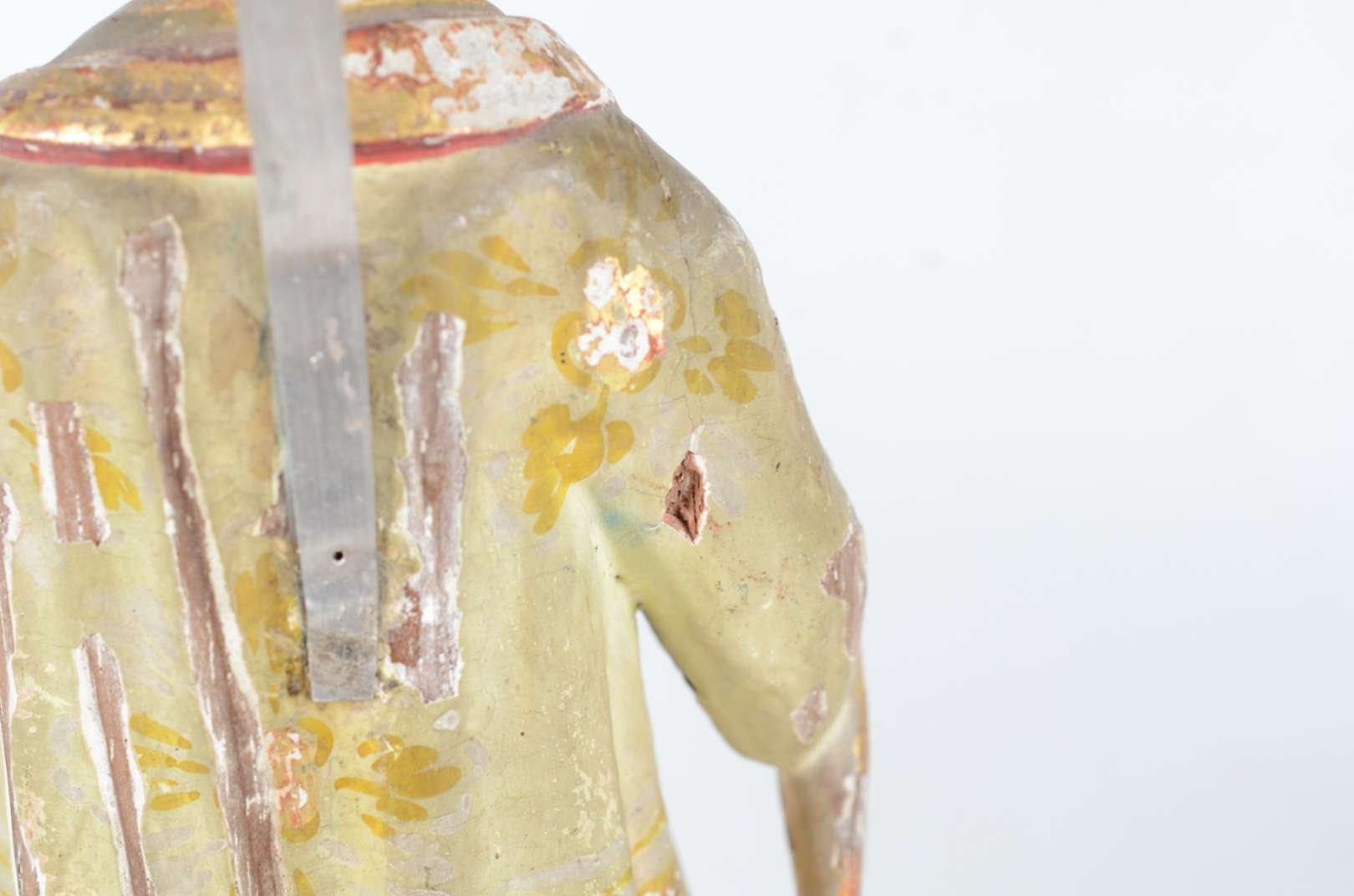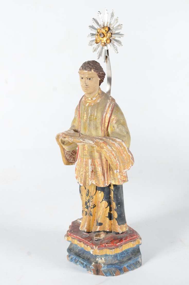 São Jose sem menino - Antiga imagem de madeira policromada, resplendor de metal.