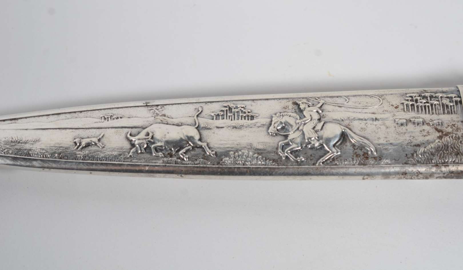 Três peças diversas de marfim, sendo: pescador com base de madeira, broche e marcador da página. Chapéu do pescador q...