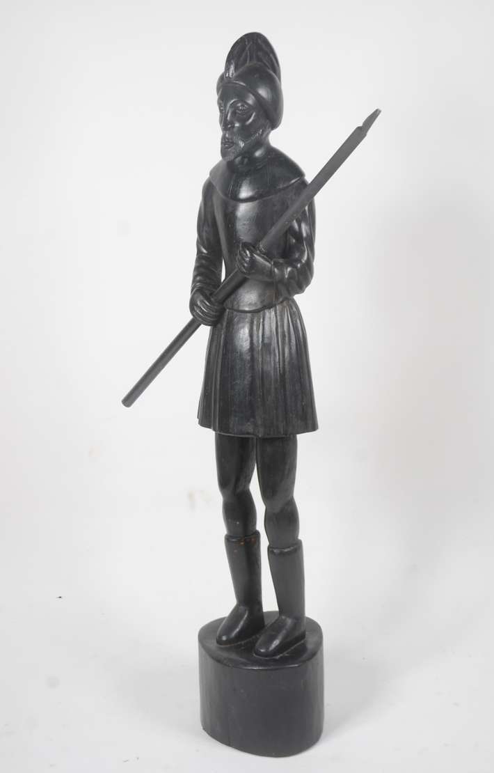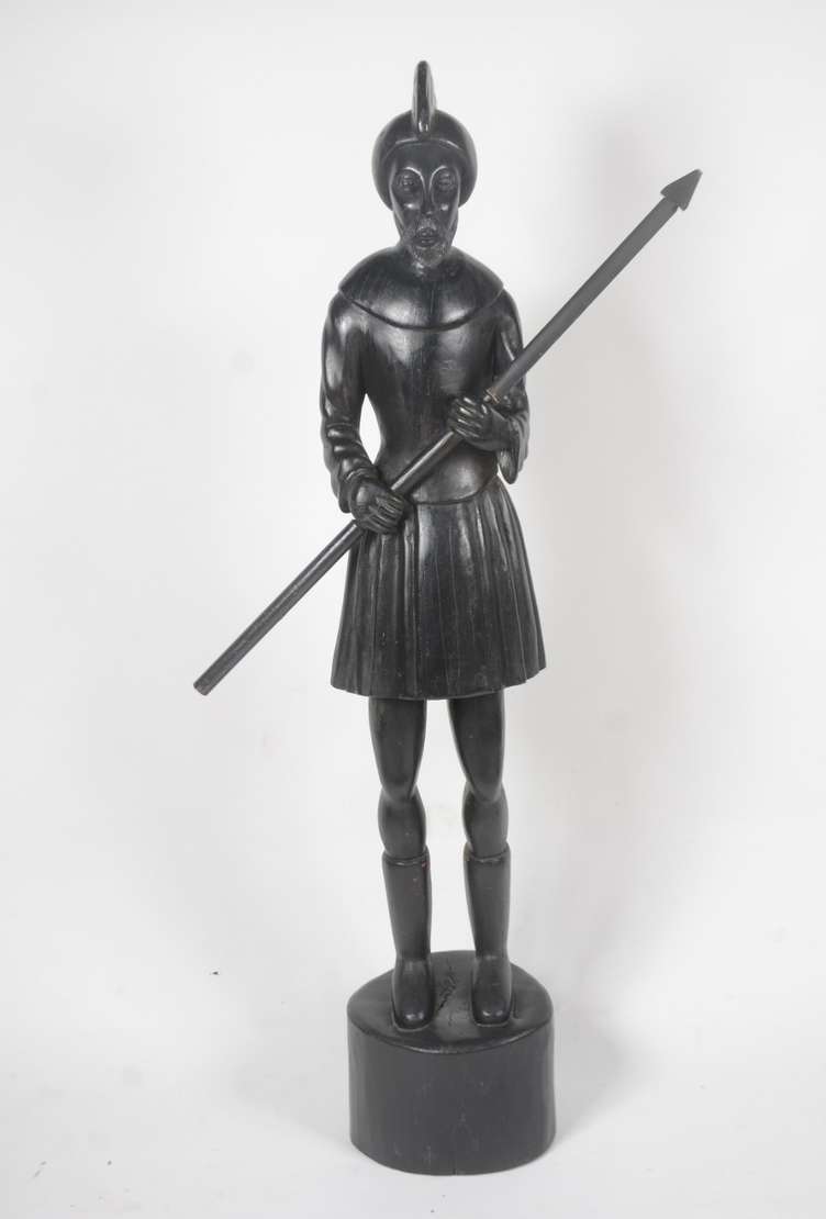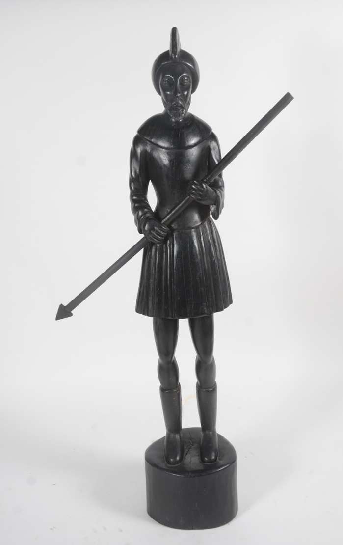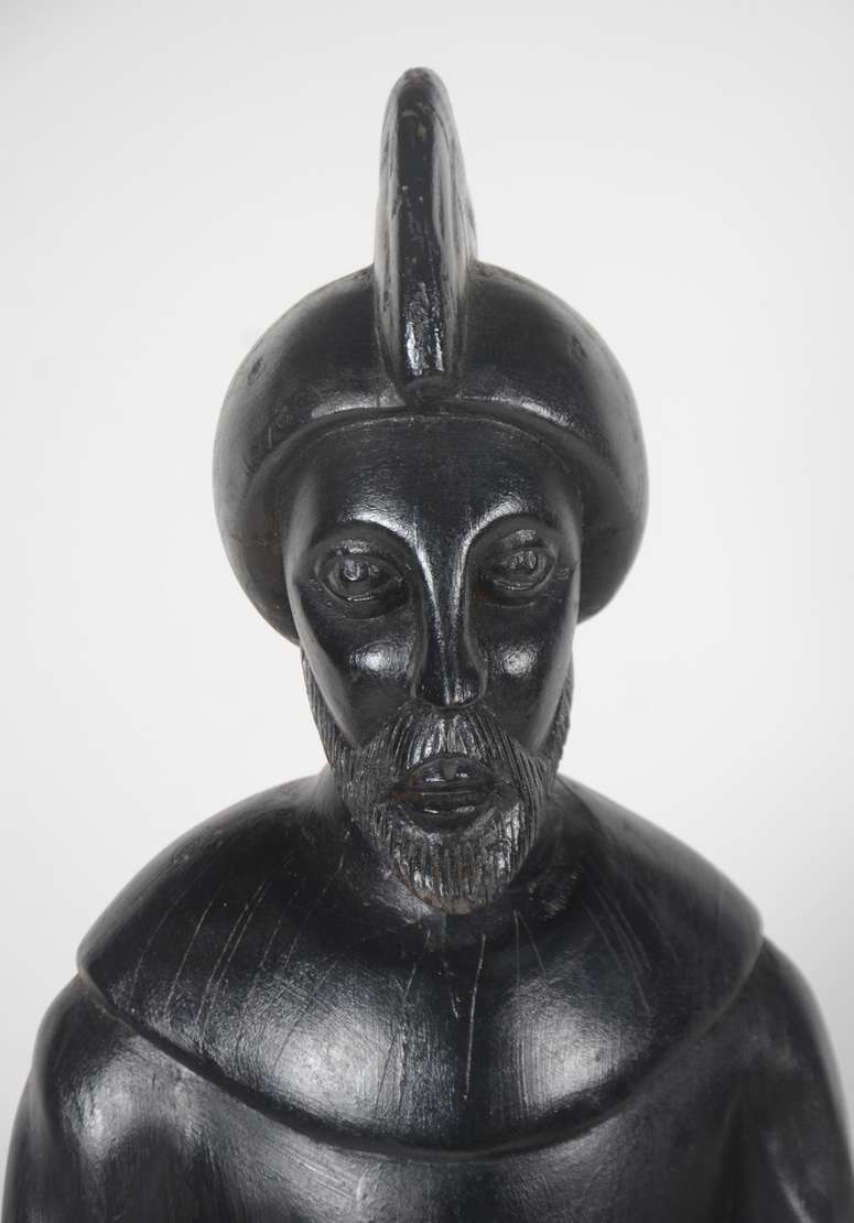 Escultura de bronze e marfim, assinado.
