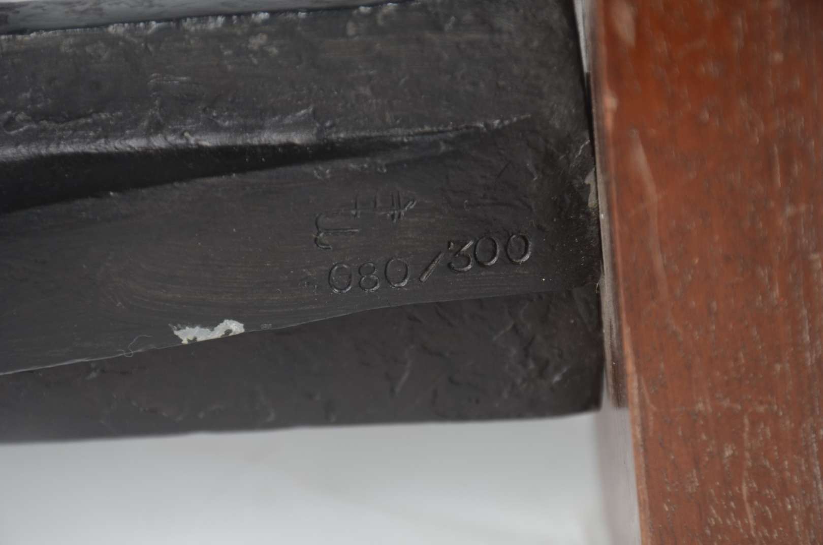 Escultura de petit bronze representando ferreiro. Com selo da fundição, assinado.