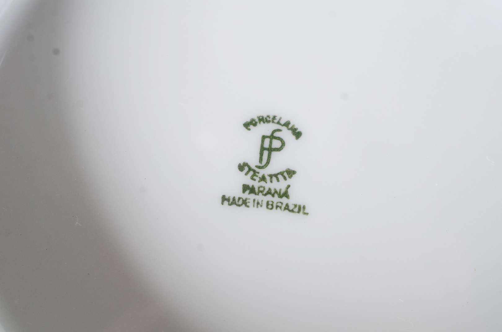 Três peças de porcelana, sendo: potiche de porcelana Dom Pedro, na cor bege com figuras figuras femininas realçadas e...