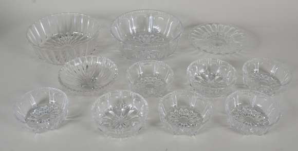 Diversas peças de cristal lapidado, sendo: 2 saladeiras, 7 bolws e 2 porta confeitos. Total: 11 peças.