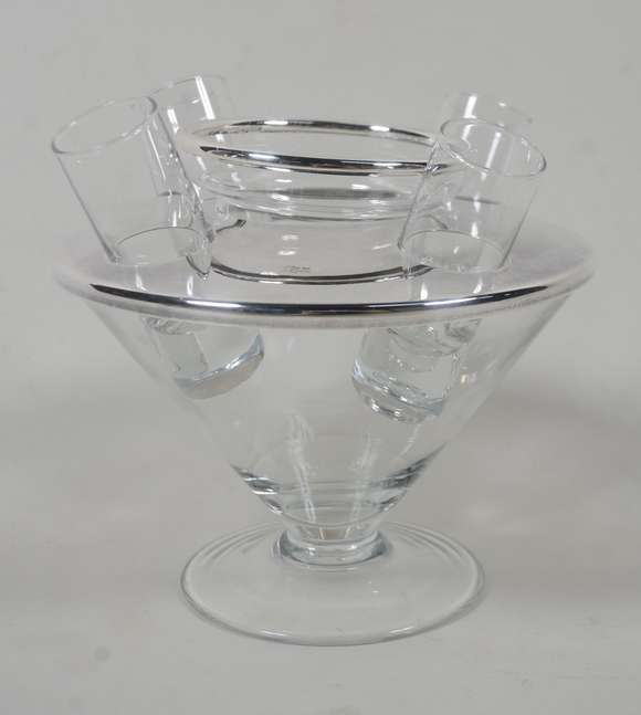 Conjunto de cristal e metal prateado "Riva" para caviar e 4 copinhos para vodka.