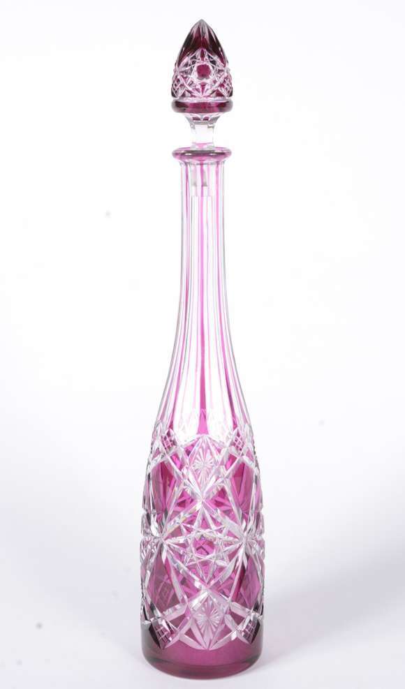 Garrafa de cristal europeu doublé rosa lapidado.