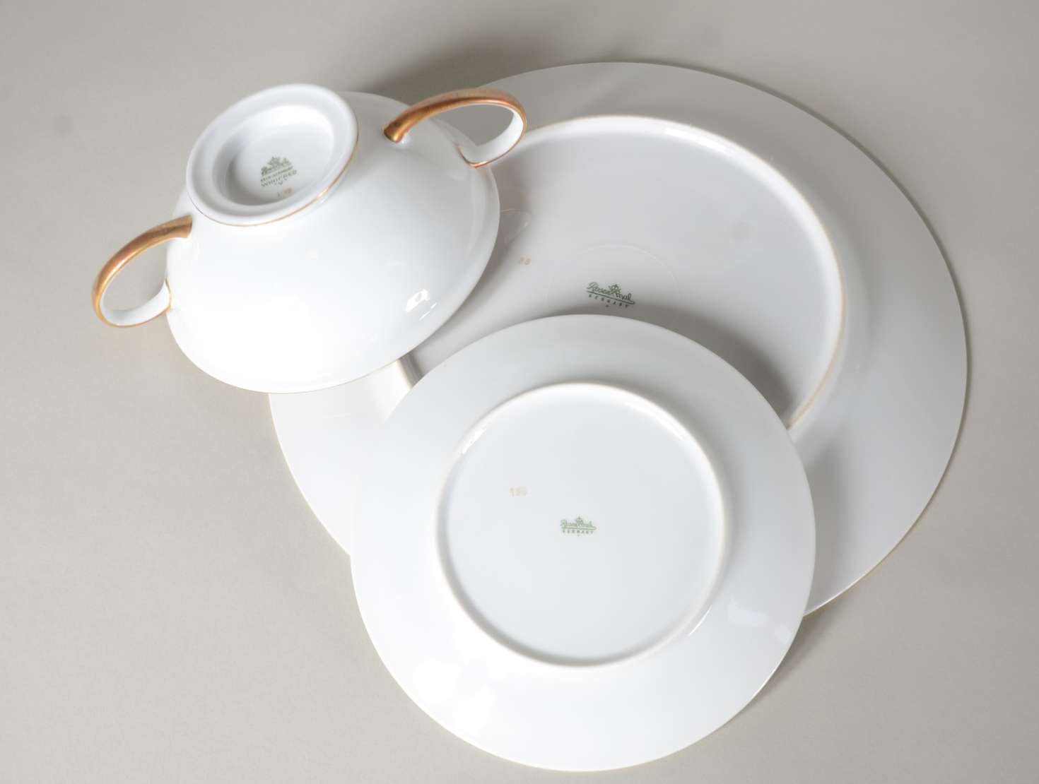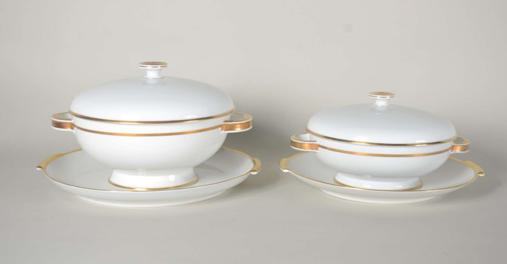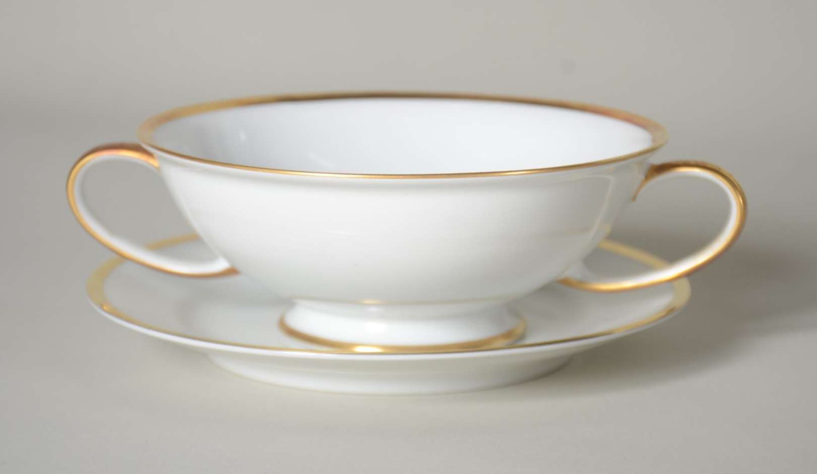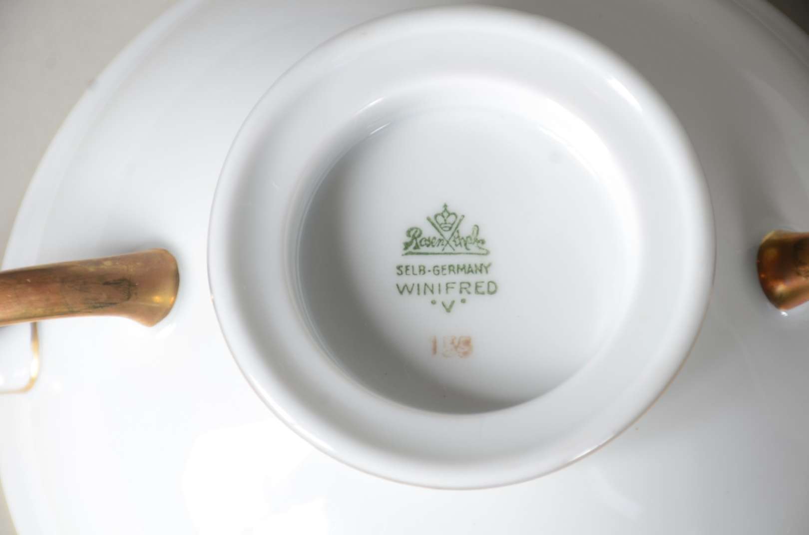 Sopeira de faiança J&G Meakin branca com flores em policromia, detalhes dourados. Desgastes no dourado e craquelê e f...