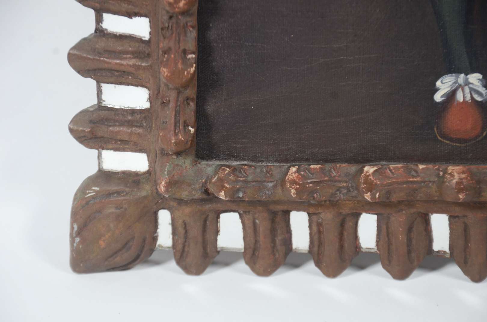 Óleo sobre placa de metal. Com pontos de mofo e furos.