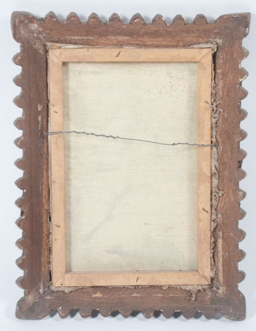 Par de porta retratos com molduras de madeira entalhada e dourada. (desgastes).