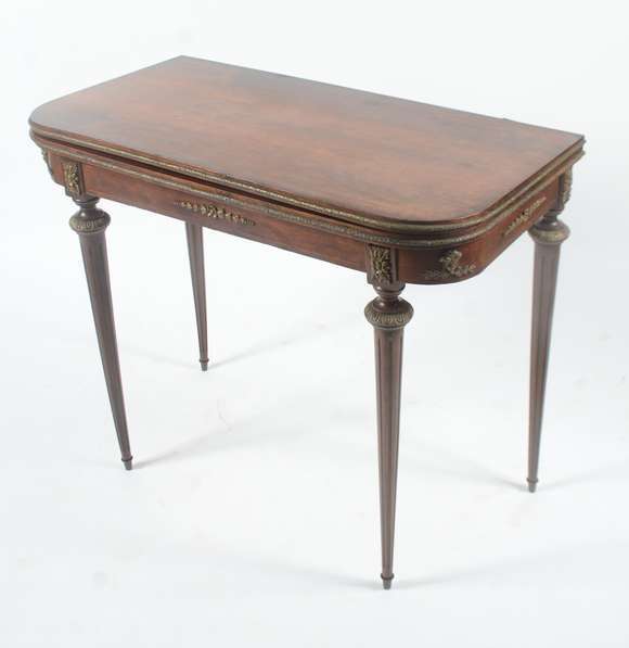 Aparador/Mesa de jogo de madeira nobre, estilo francês, tampo dobrável com parte interna forrada com feltro verde, pe...