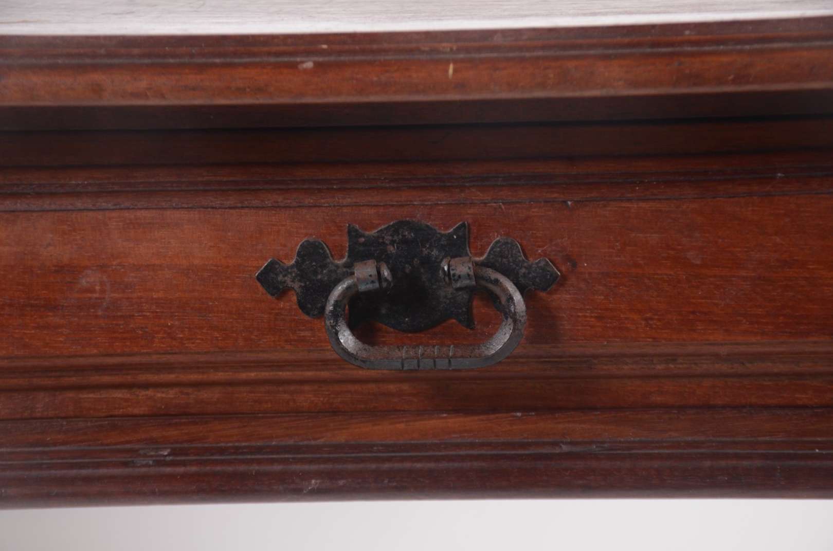 Aparador de madeira nobre, pernas frontais arqueadas, com uma gaveta, tampo de mármore. Pequena parte da frente no ca...