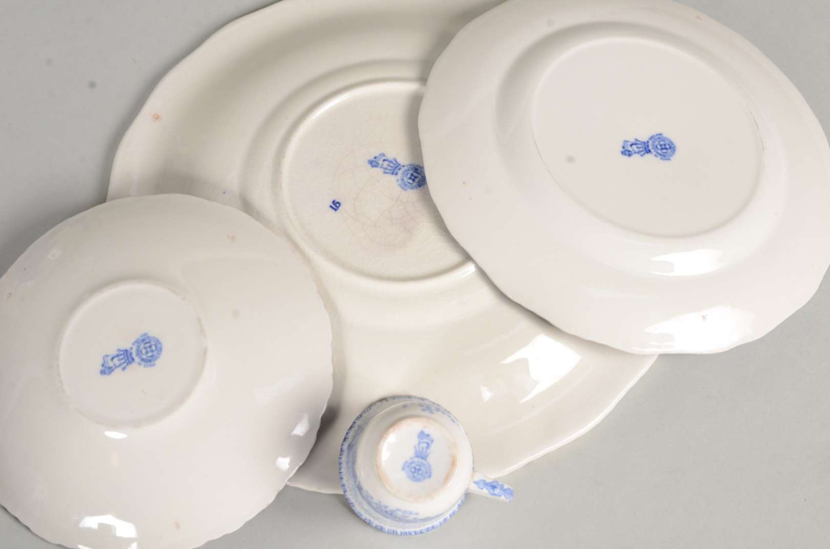 Sopeira de faiança J&G Meakin branca com flores em policromia, detalhes dourados. Desgastes no dourado e craquelê e f...