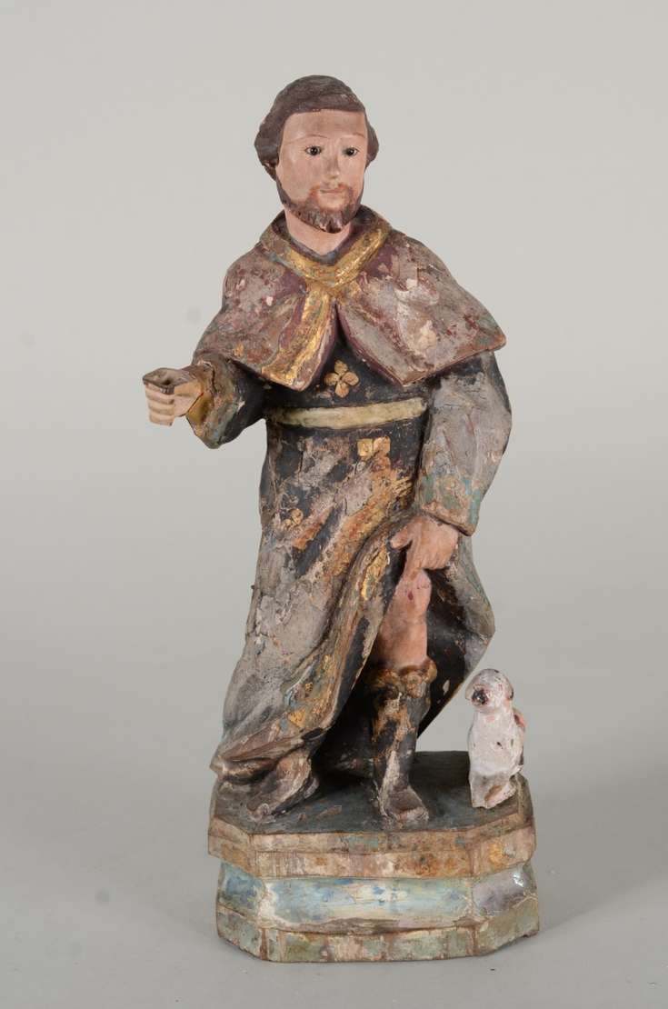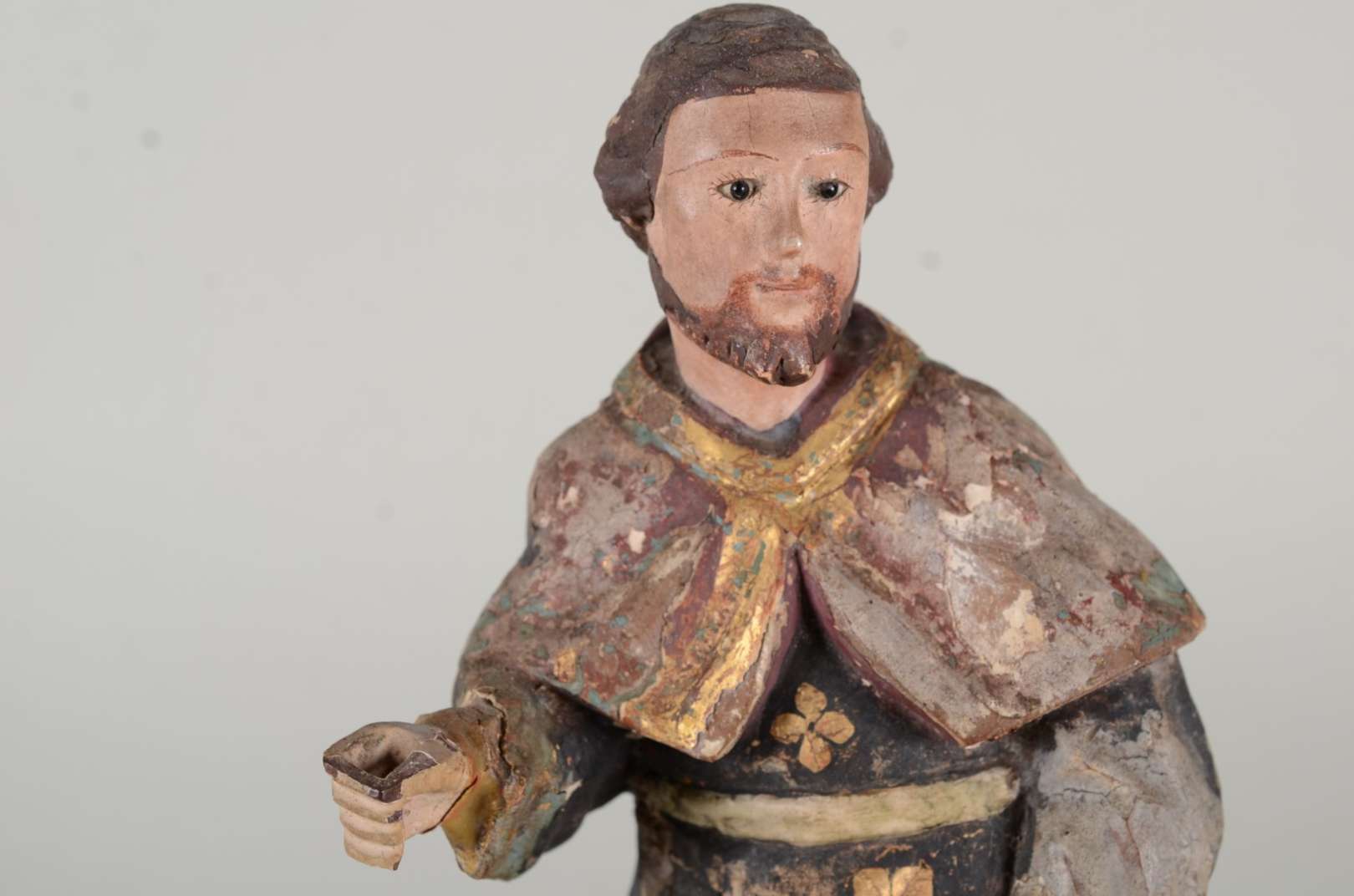 Santo Papa - Antiga imagem de madeira policromada, pedestal entalhado e dourado.