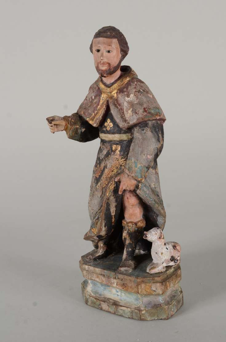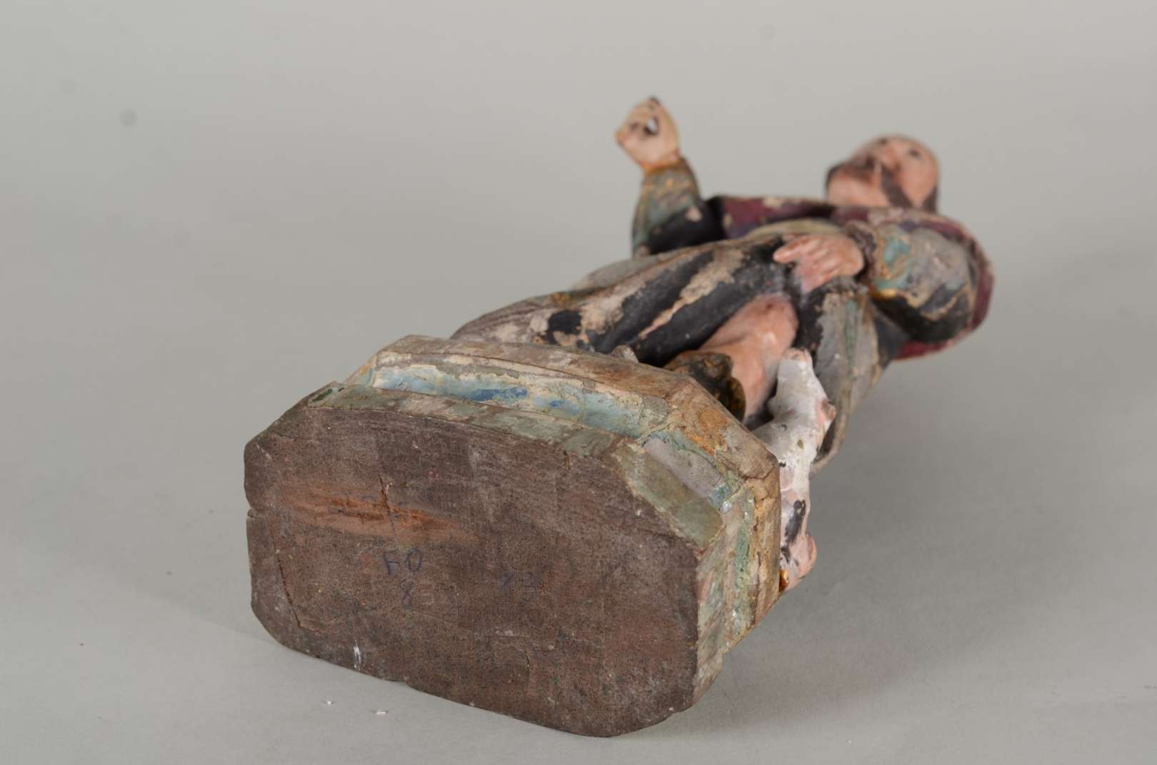 Santo Antônio - Grande e antiga imagem de madeira entalhada e policromada. Cabeça com parte posterior com rachados e ...