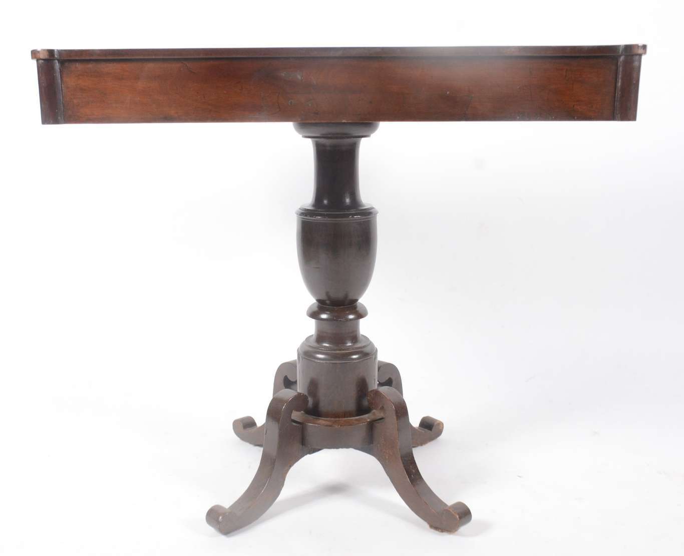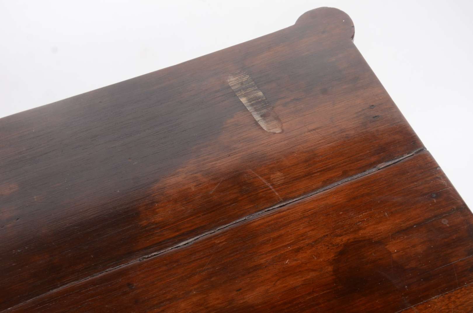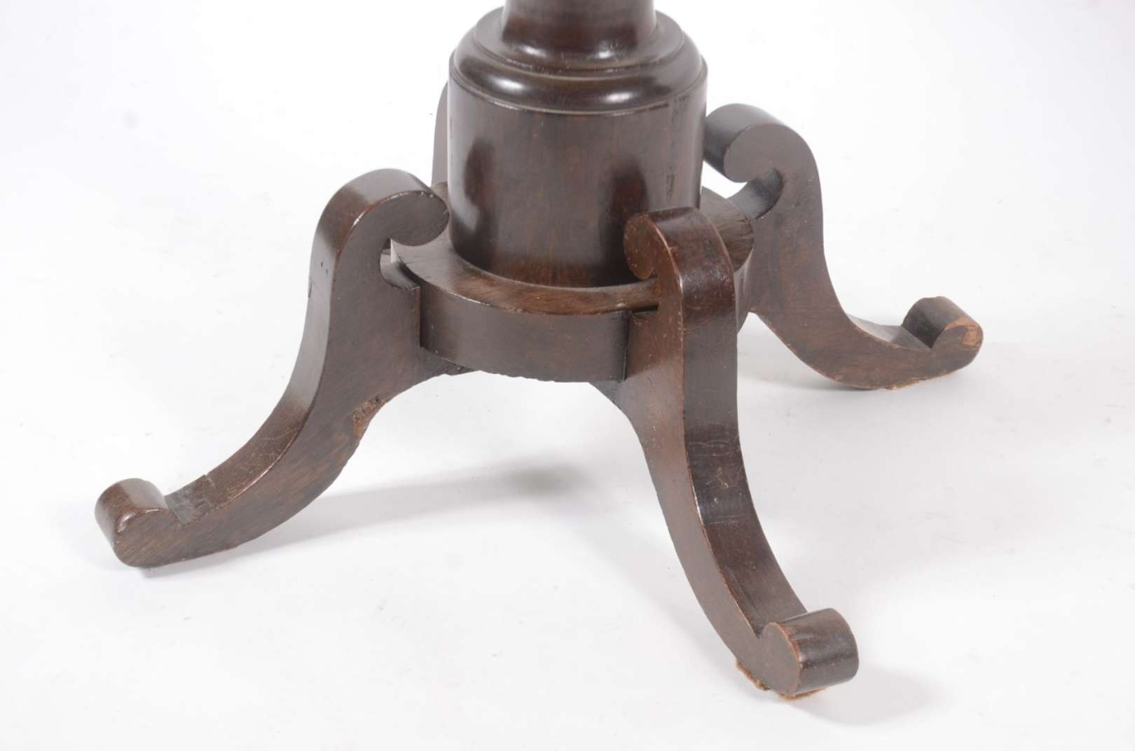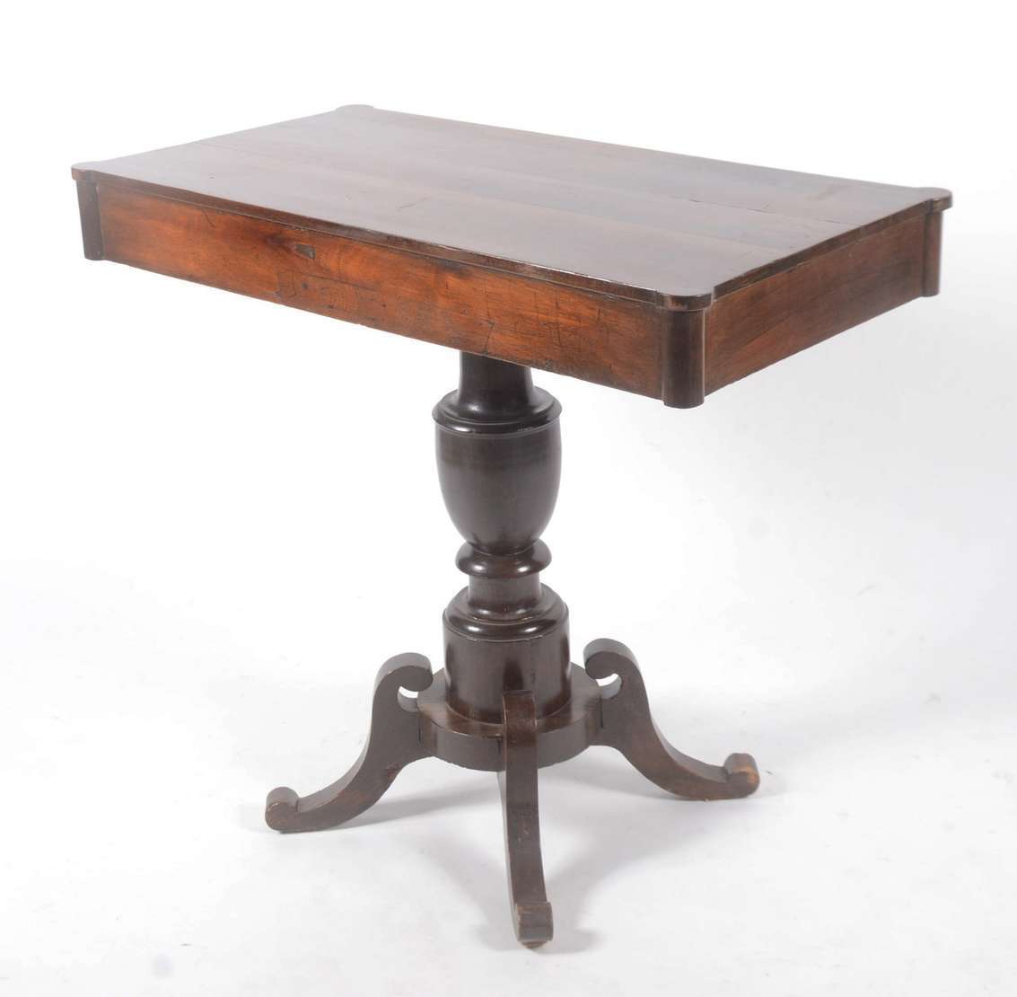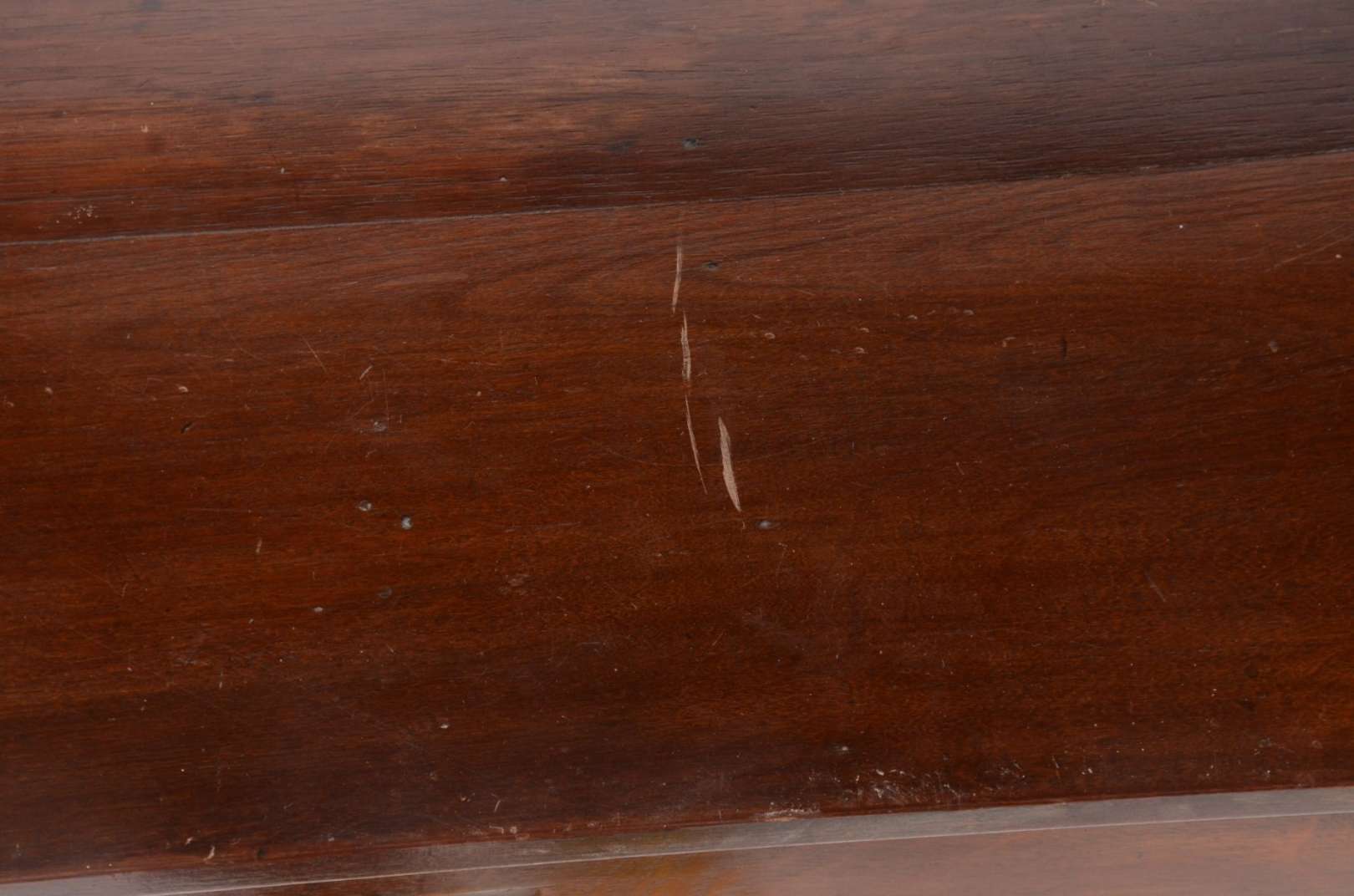 Mesa alta de madeira nobre, tampo retangular apoiado em pernas torneadas ligadas por traves inferiores. Estilo manoel...