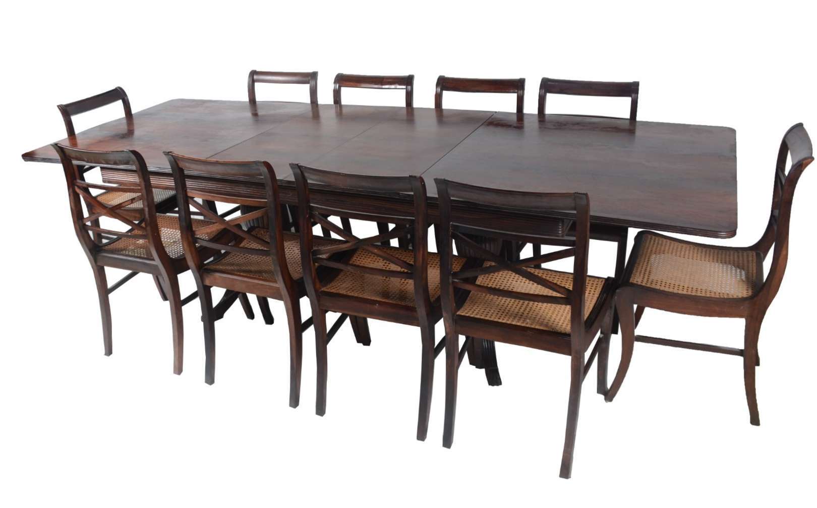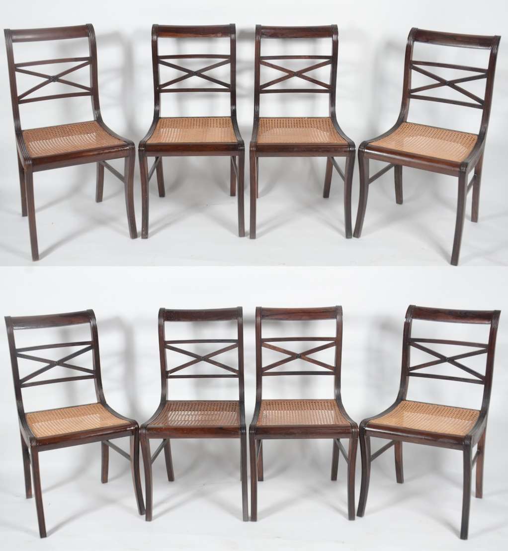 Conjunto com oito cadeiras de madeira nobre, estilo Dom José, ricamente entalhadas, assentos de couro pirogravado e t...