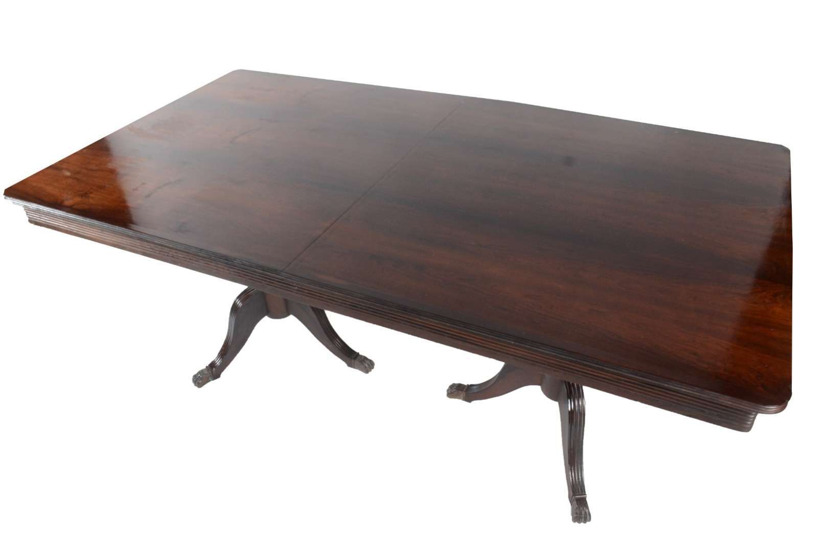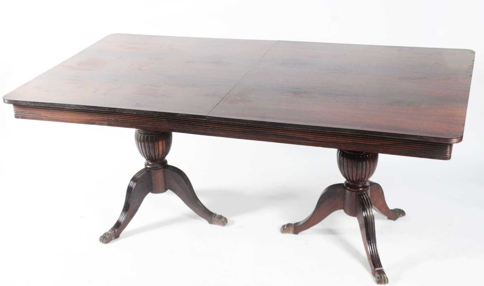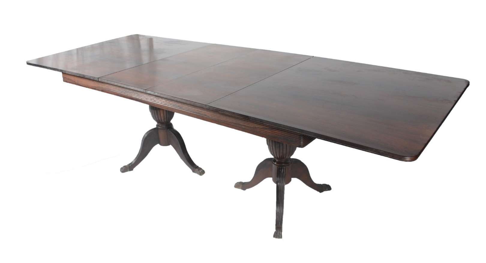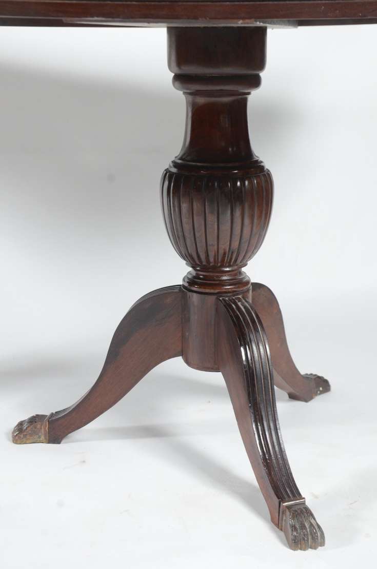 Aparador de madeira nobre, tampo retangular apoiado em coluna central torneada, terminando em quatro pés recurvos. Pe...