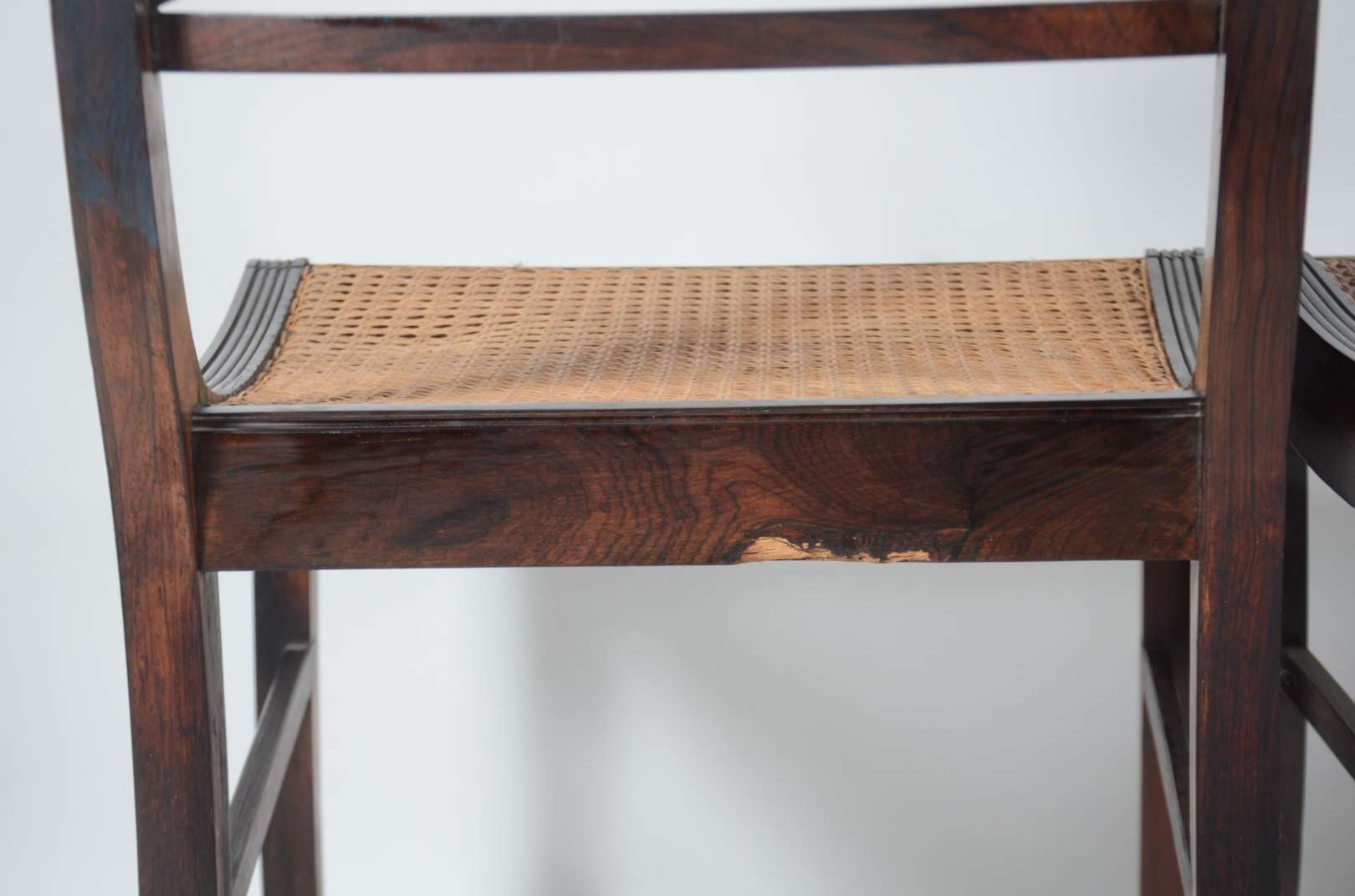 Quatro cadeiras para sala de jantar de madeira nobre, assentos de palhinha. Uma delas com palhinha precisando de repa...