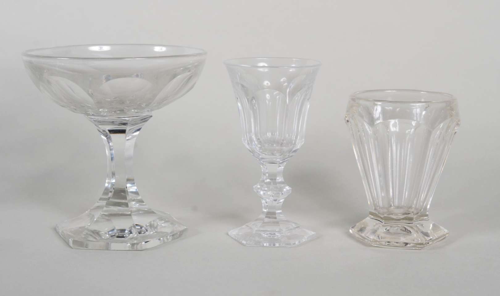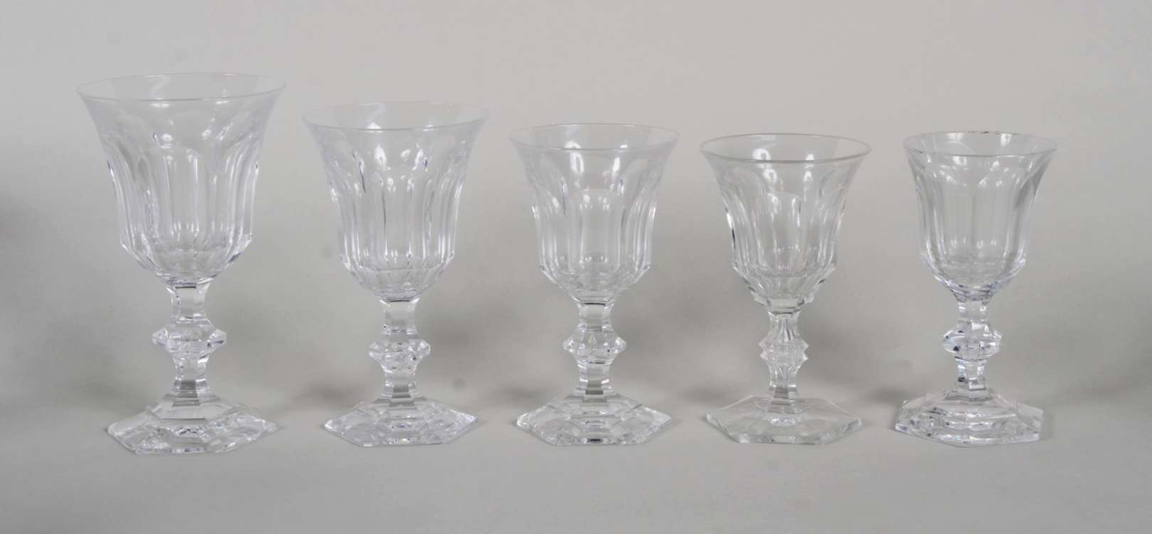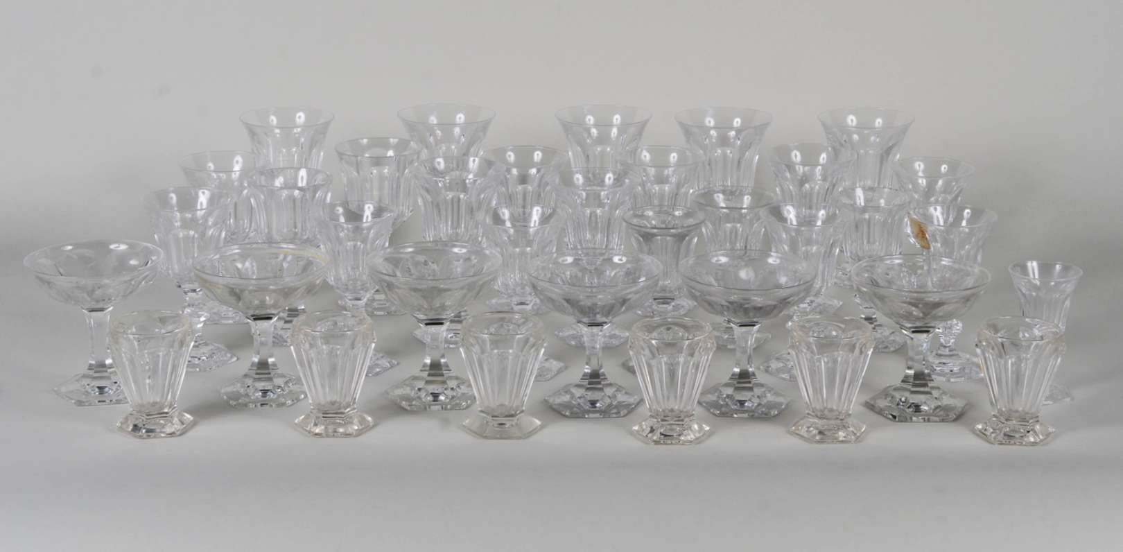 Serviço de cristal, composto de: 12 taças para água, 6 para vinho tinto, 13 para vinho branco, 8 para licor e jarra p...