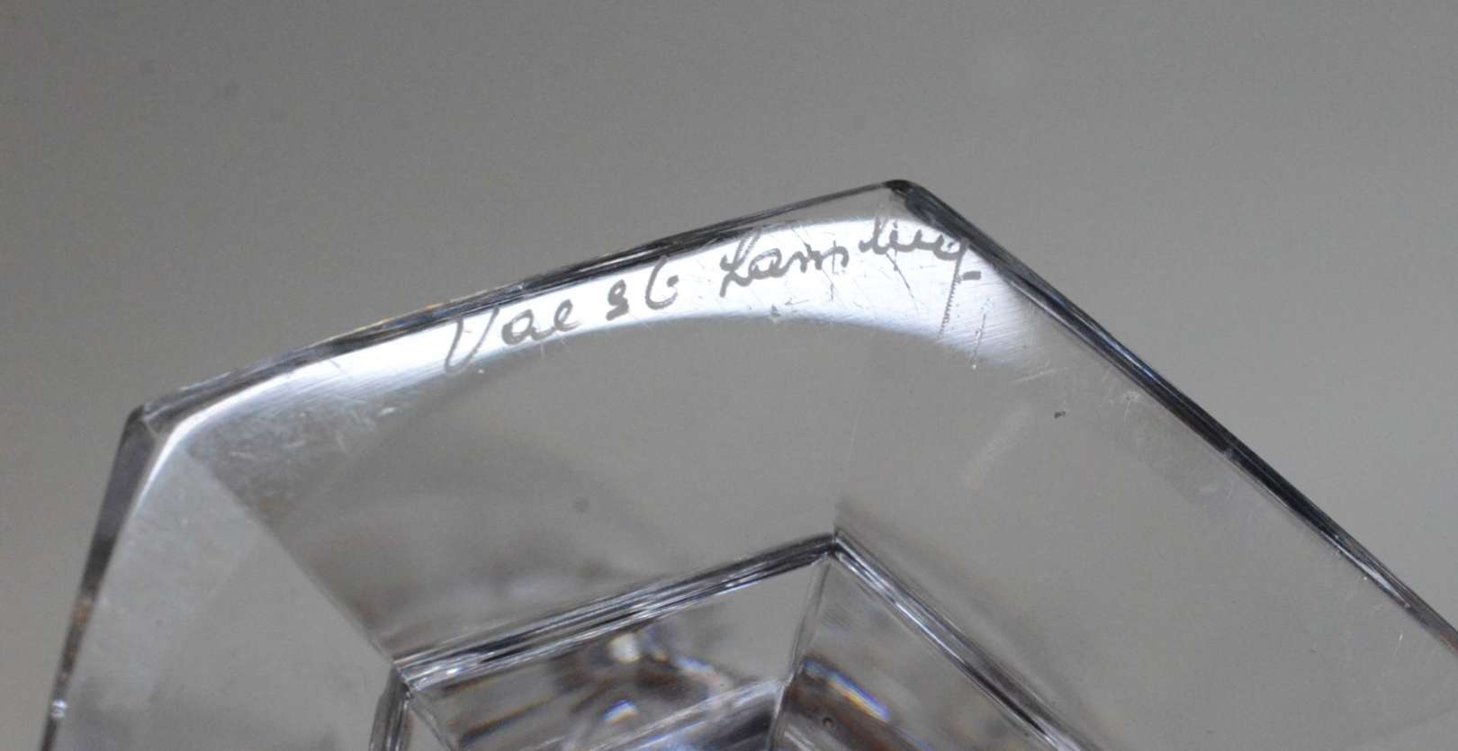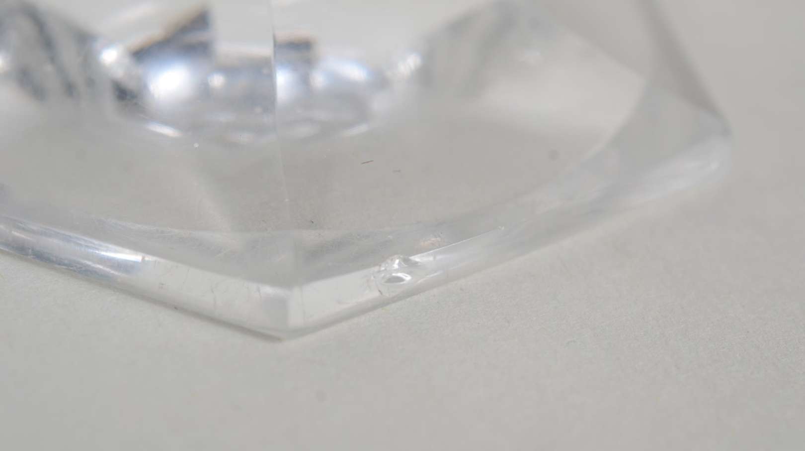 Centro de mesa de vidro decorativo feitio navete lapidada.