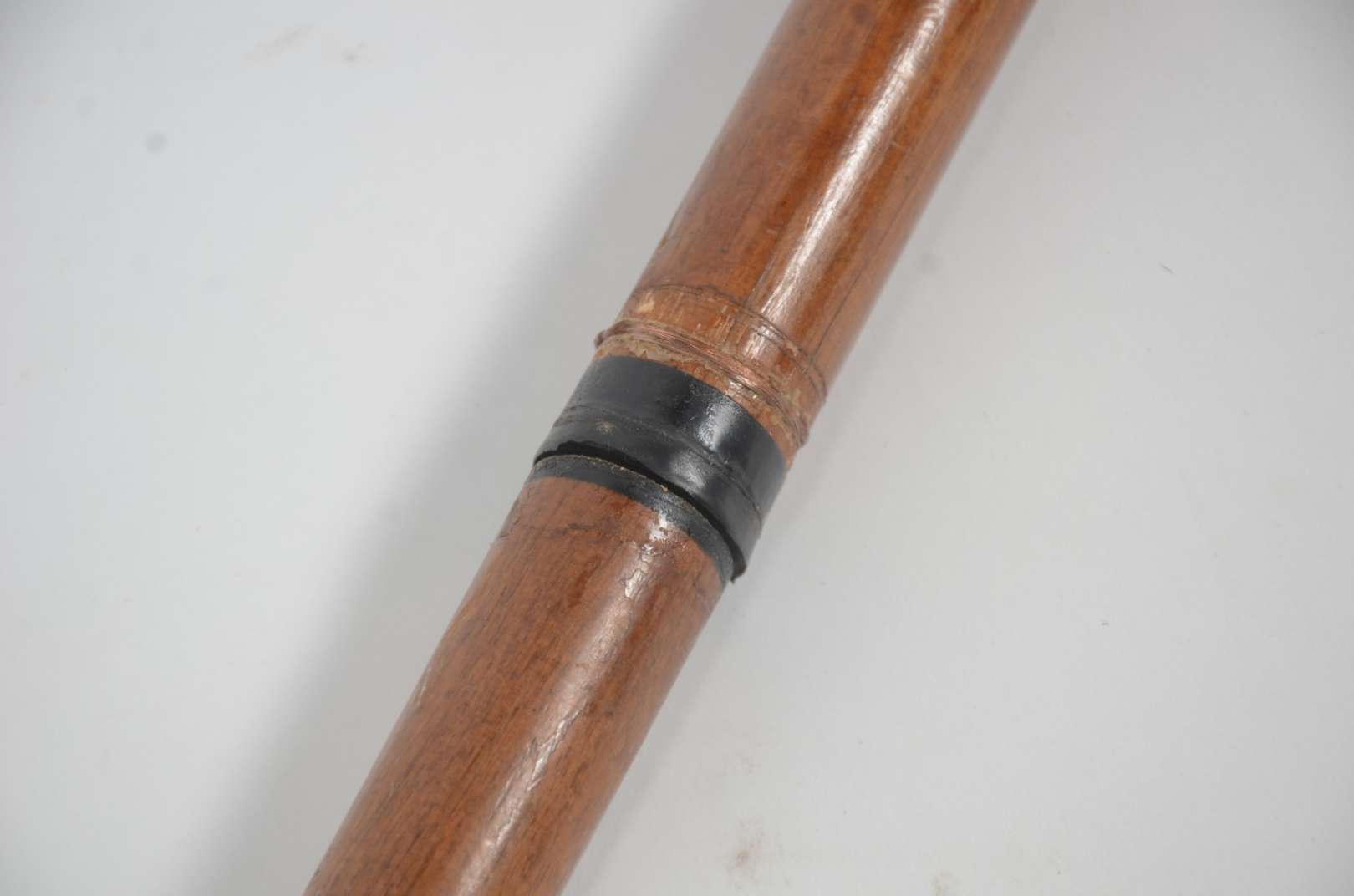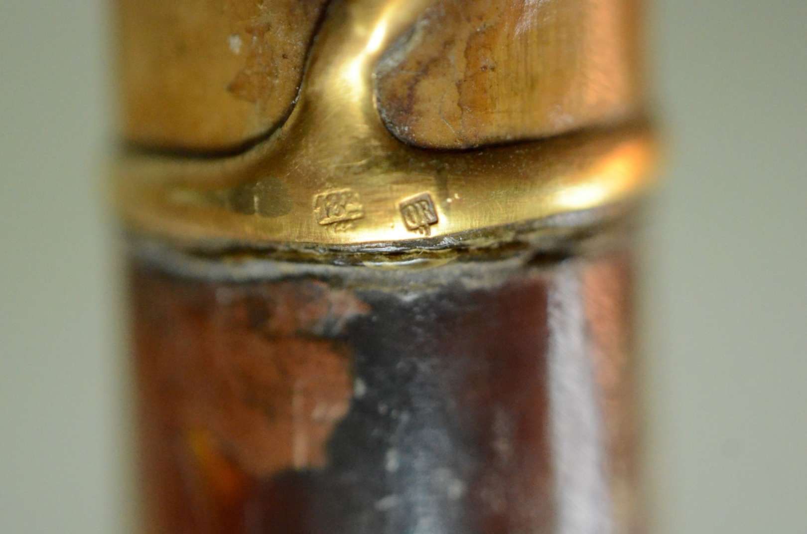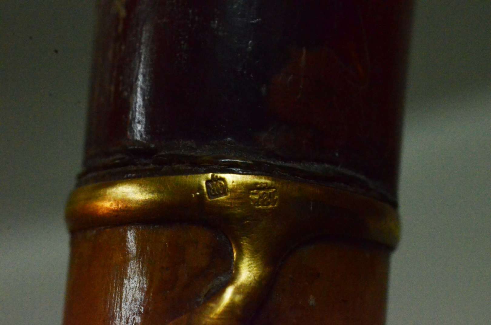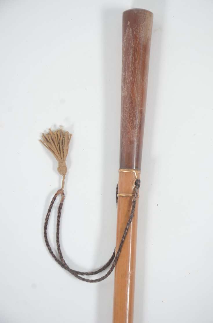 Bengala de madeira nobre, castão com detalhe em moeda.