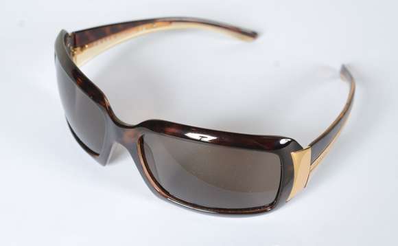 Óculos de sol da marca Prada, no estojo.