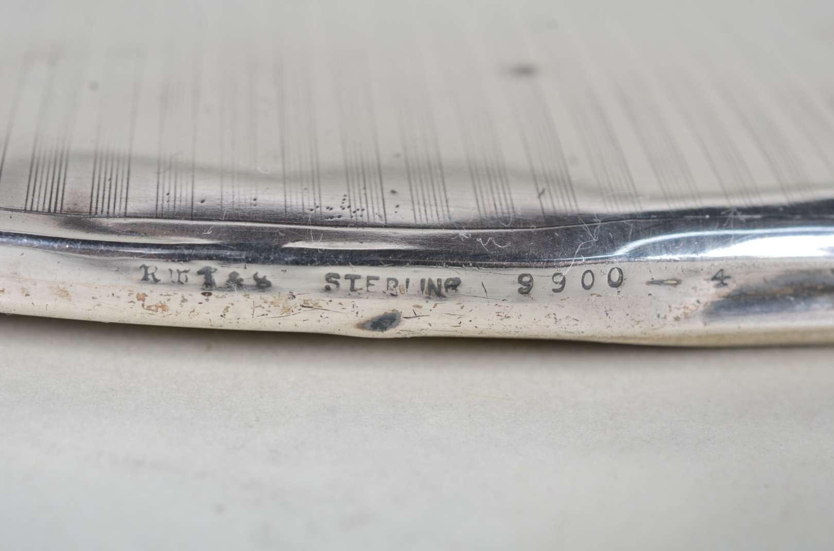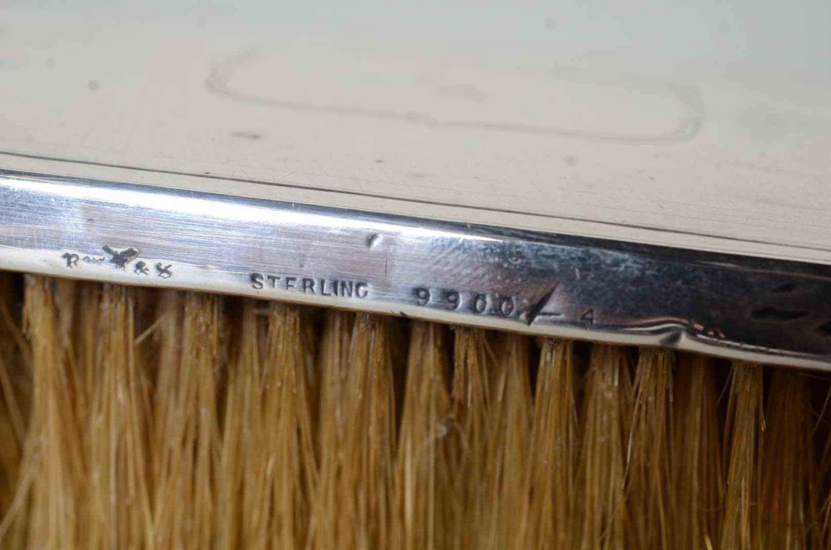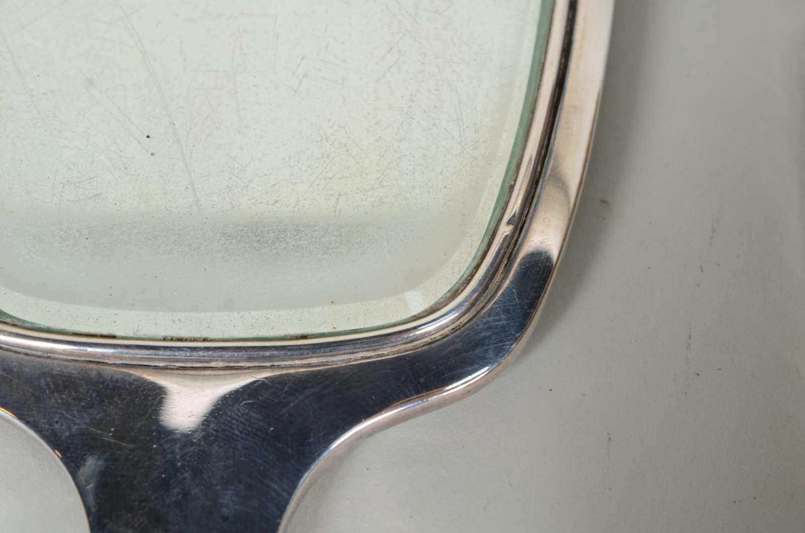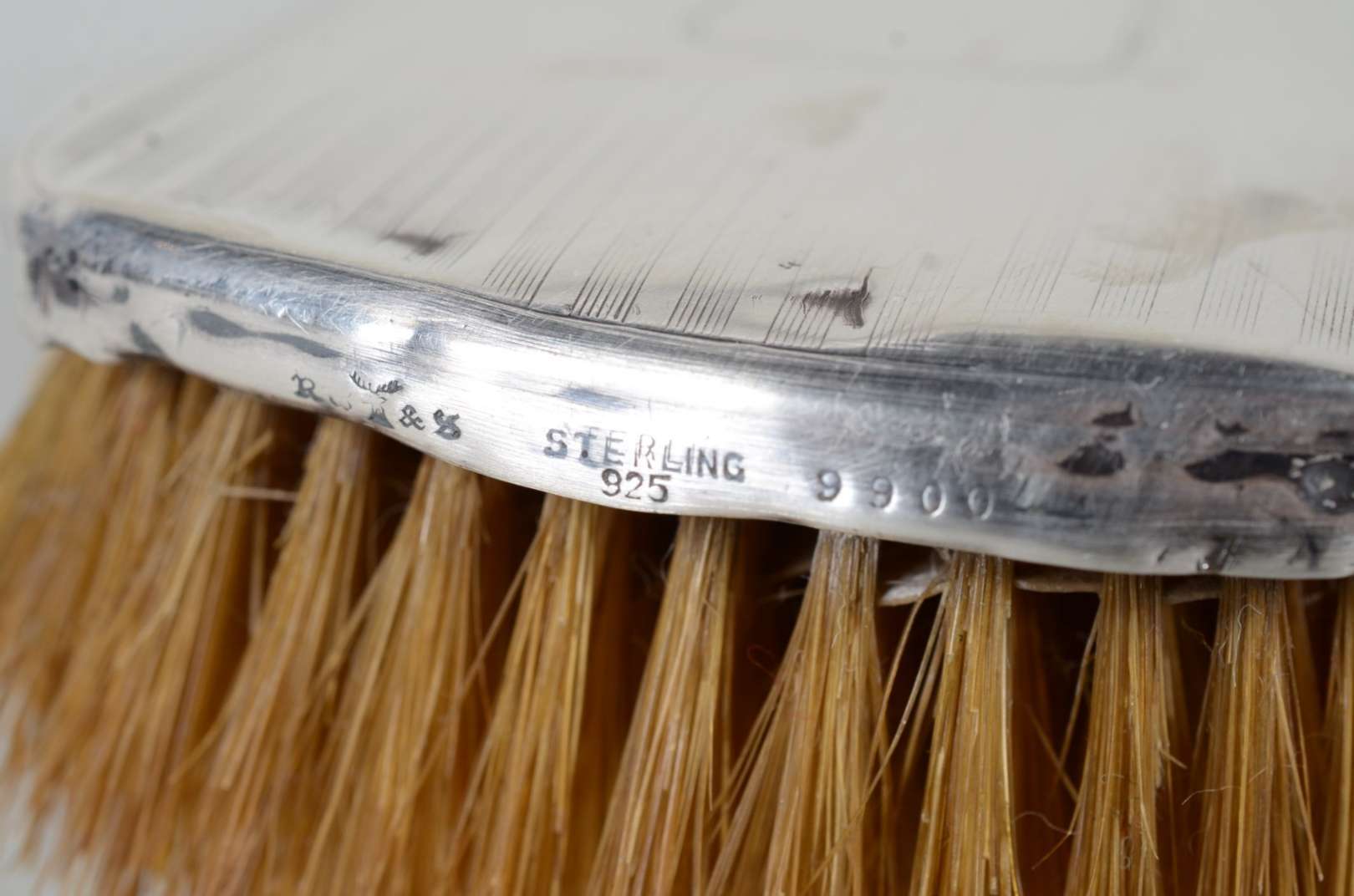 Conjunto para toilette de prata inglesa contrastada, sendo: 3 escovas e espelho. Peso total: 630 g. (Por motivos de s...