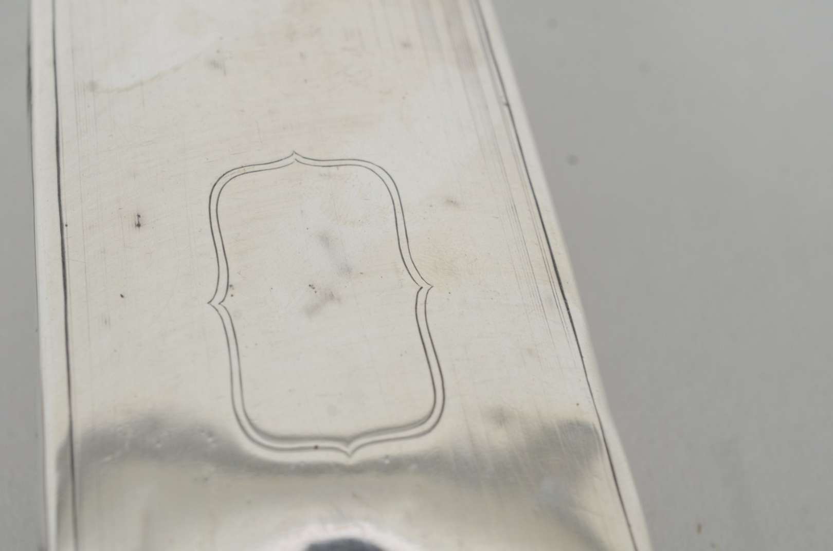 Antiga "carteirinha" de madreperola com placa de prata com monograma, parte interna forrada de tecido. Desgastes.
