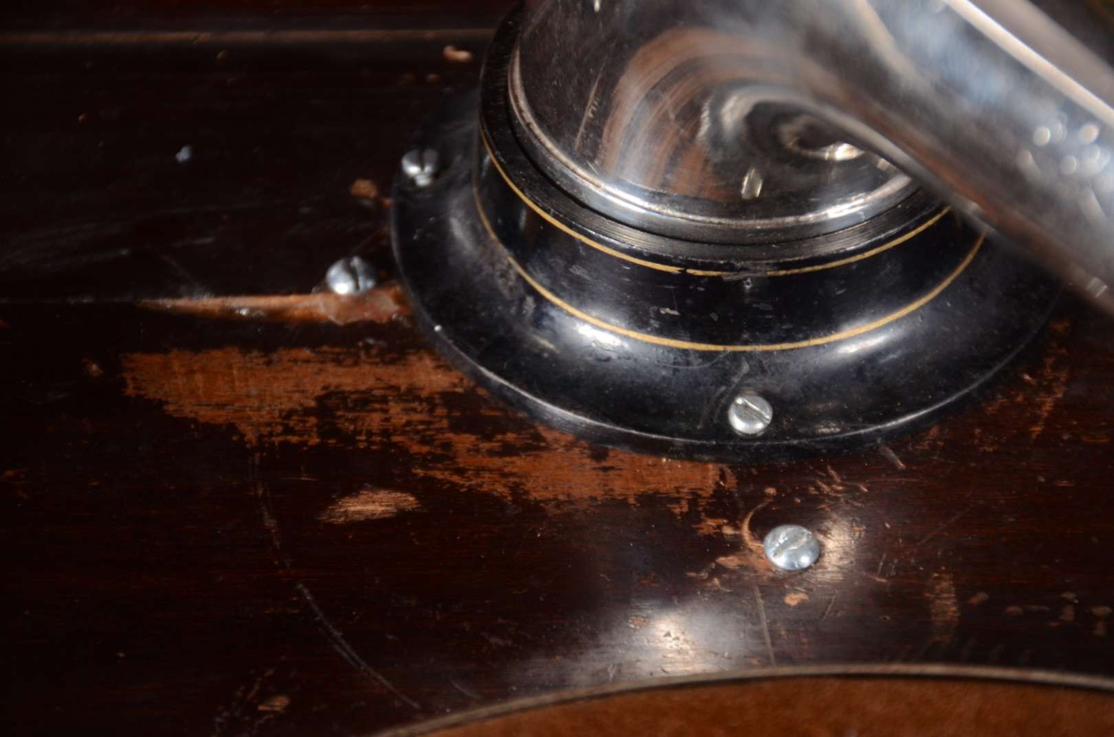 Aparador de madeira nobre, pernas frontais arqueadas, com uma gaveta, tampo de mármore. Pequena parte da frente no ca...