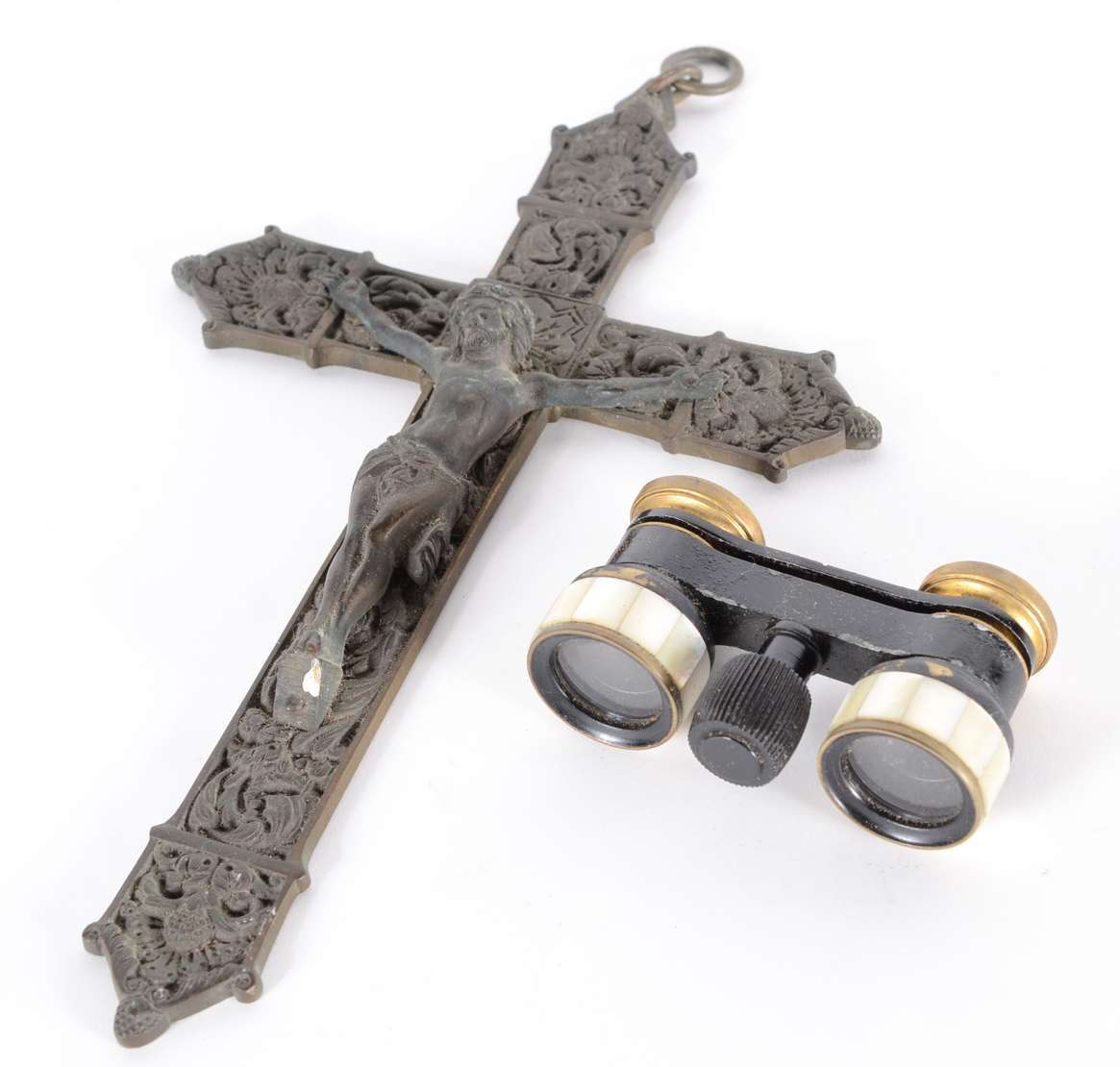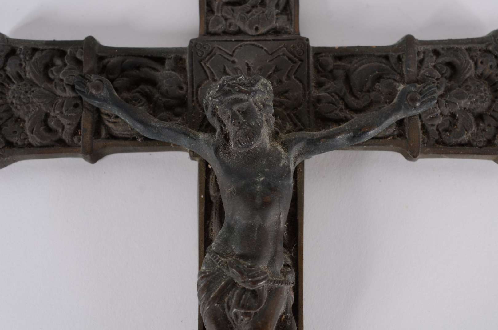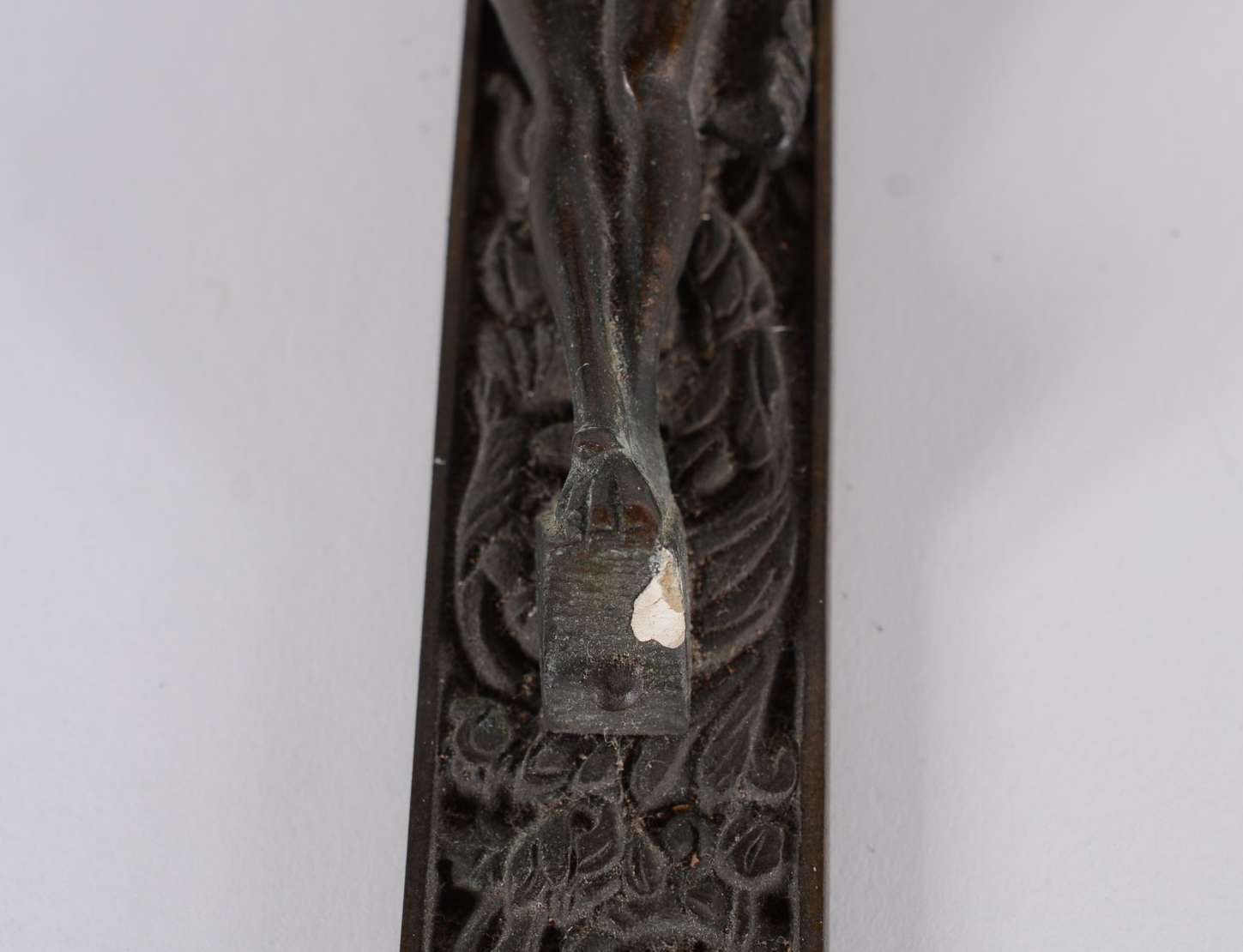 Caixa porta jóias de metal trabalhado com folhagens cinzeladas, tampa com camafeu representando figura de nobre. Part...