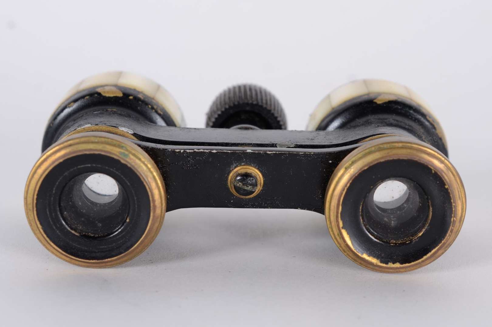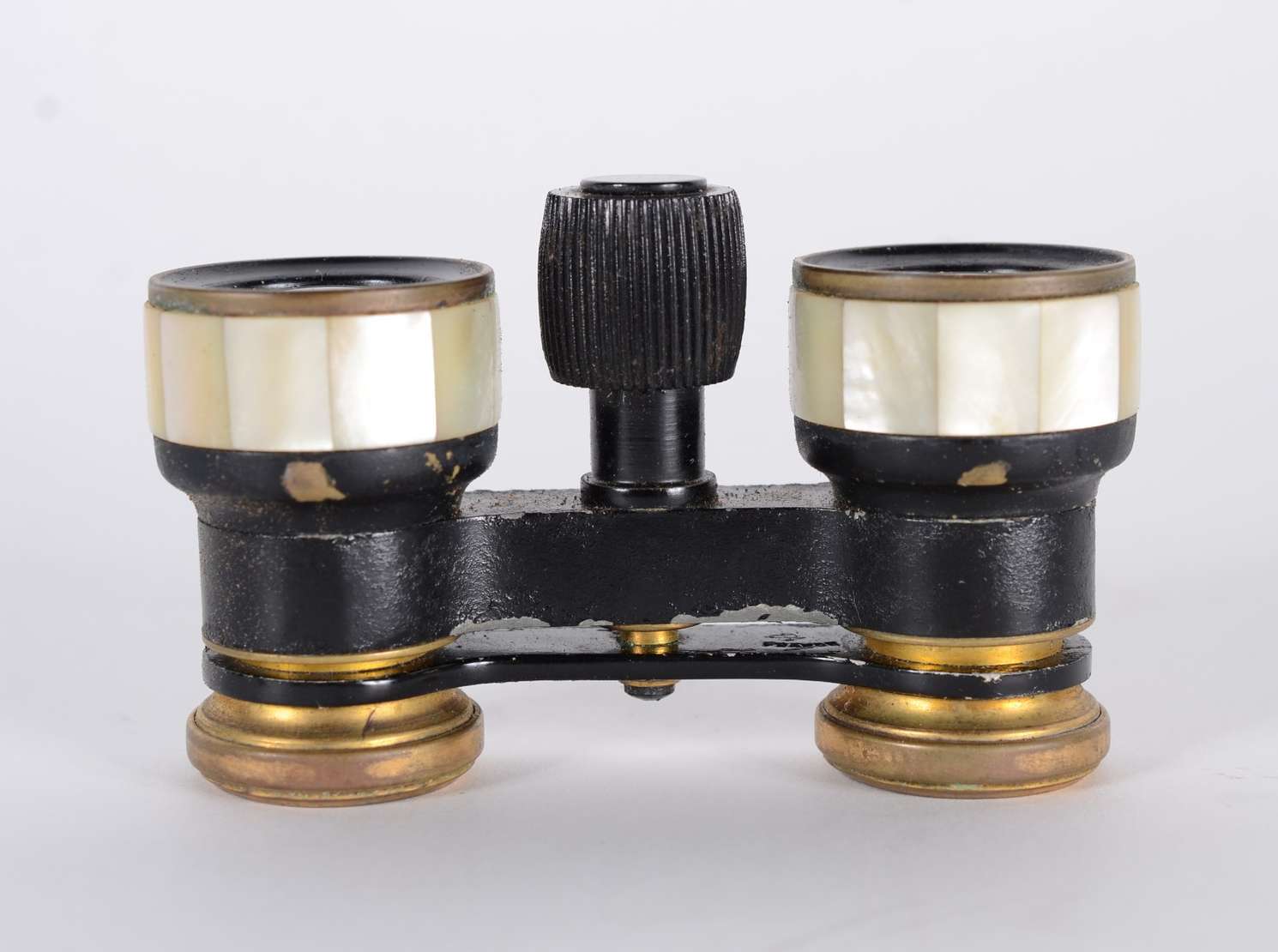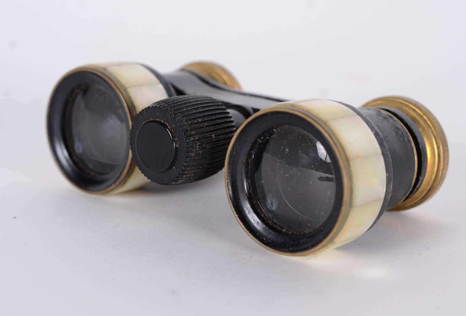 Antiga "carteirinha" de madreperola com placa de prata com monograma, parte interna forrada de tecido. Desgastes.