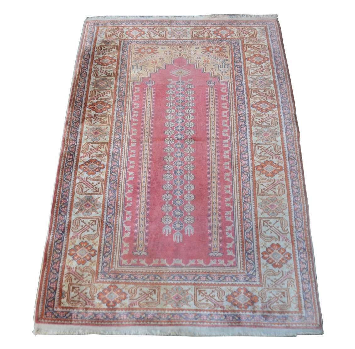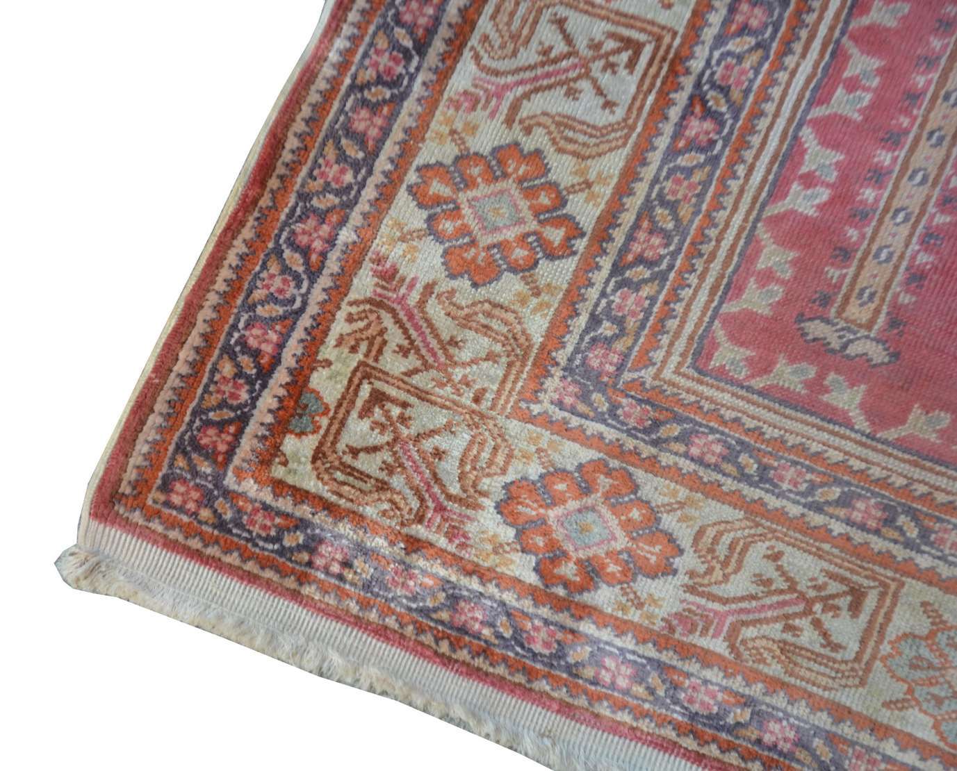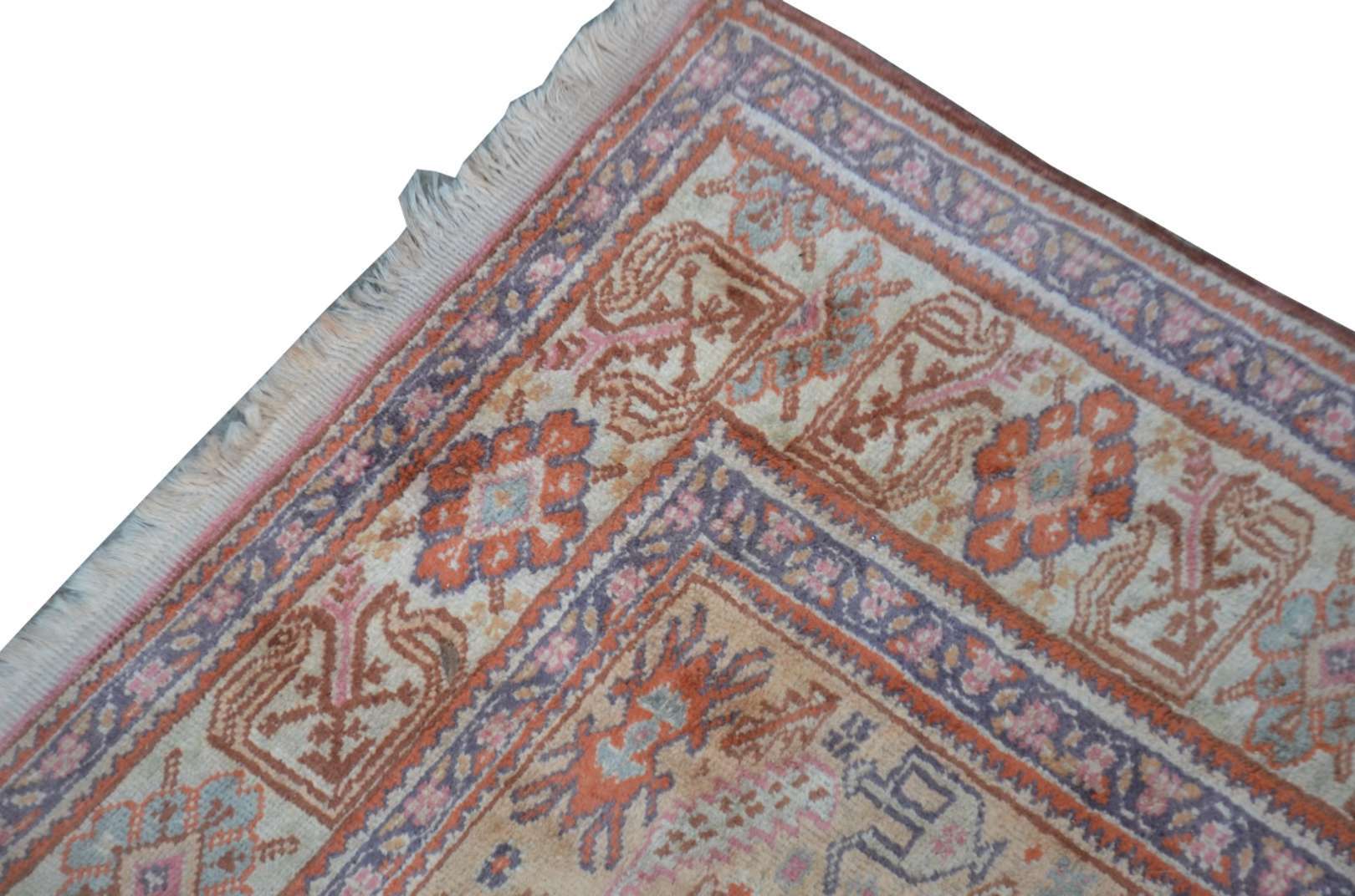 Tapete Pakistan, assinado. Com manchas e cordão solto.