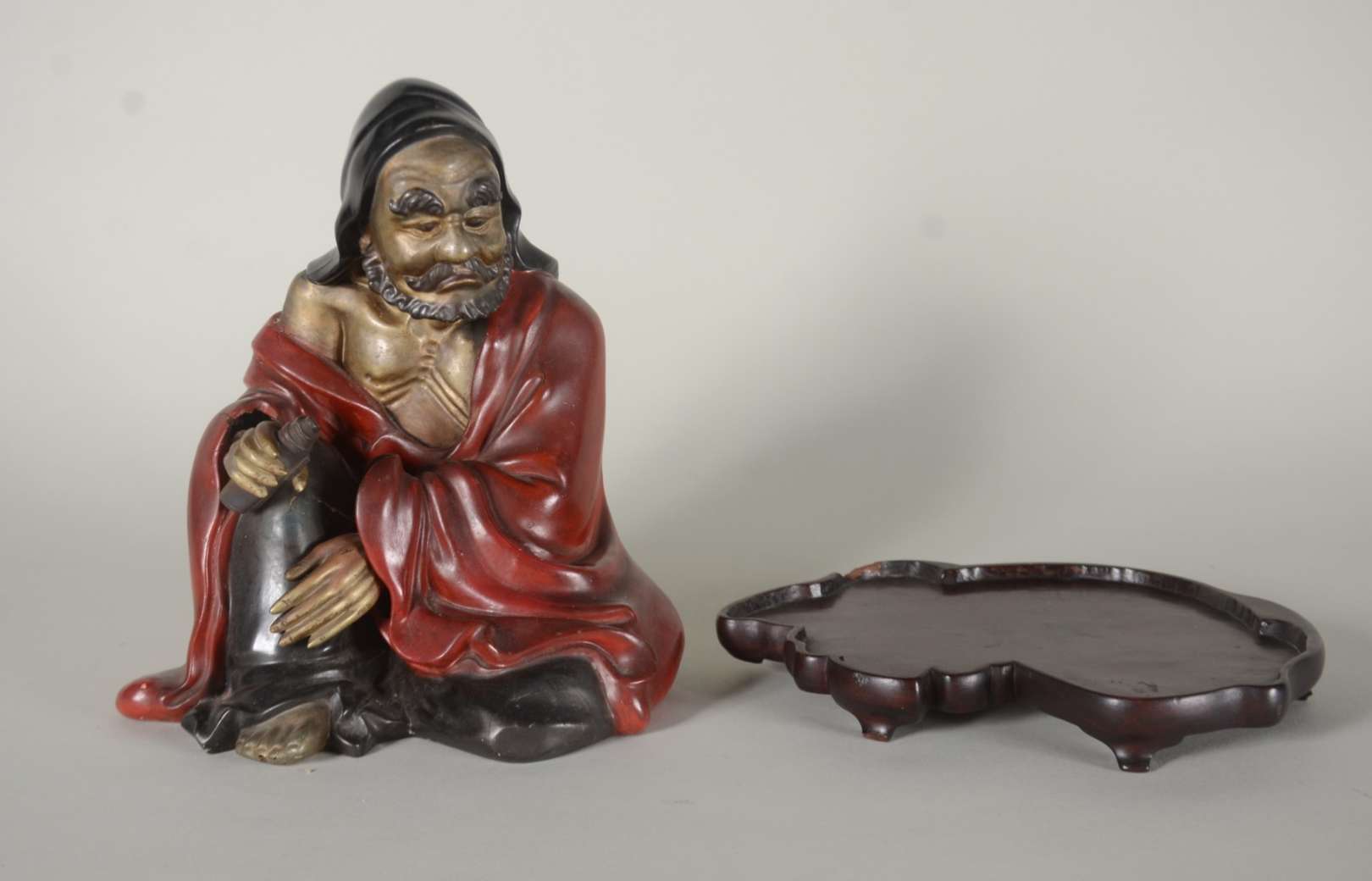 Duas figuras orientais de madeira entalhada.