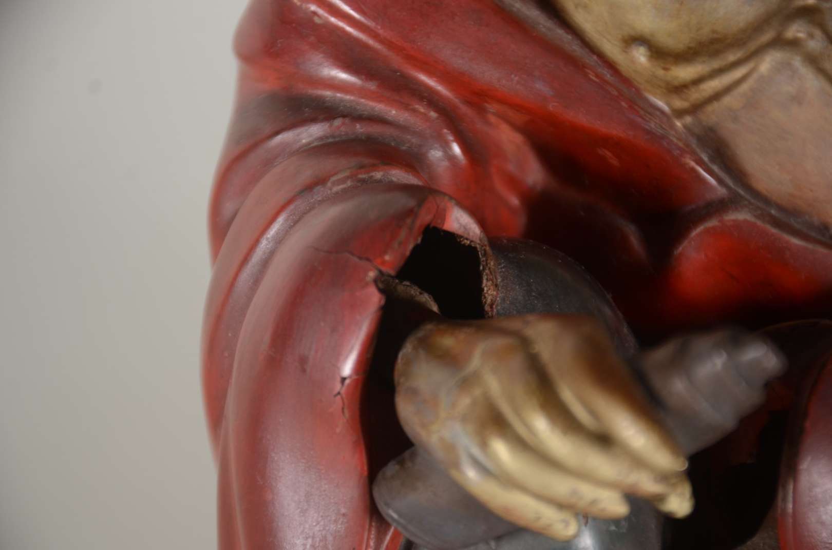 Santo Antônio - Grande e antiga imagem de madeira entalhada e policromada. Cabeça com parte posterior com rachados e ...