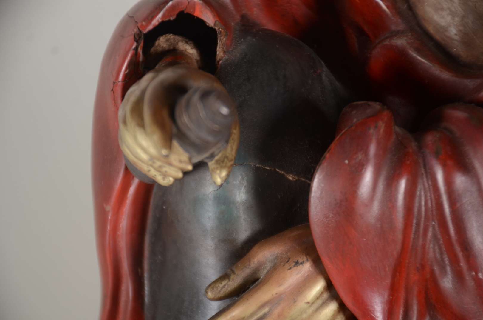 São João Batista - Antiga imagem de madeira policromada. Desgastes.