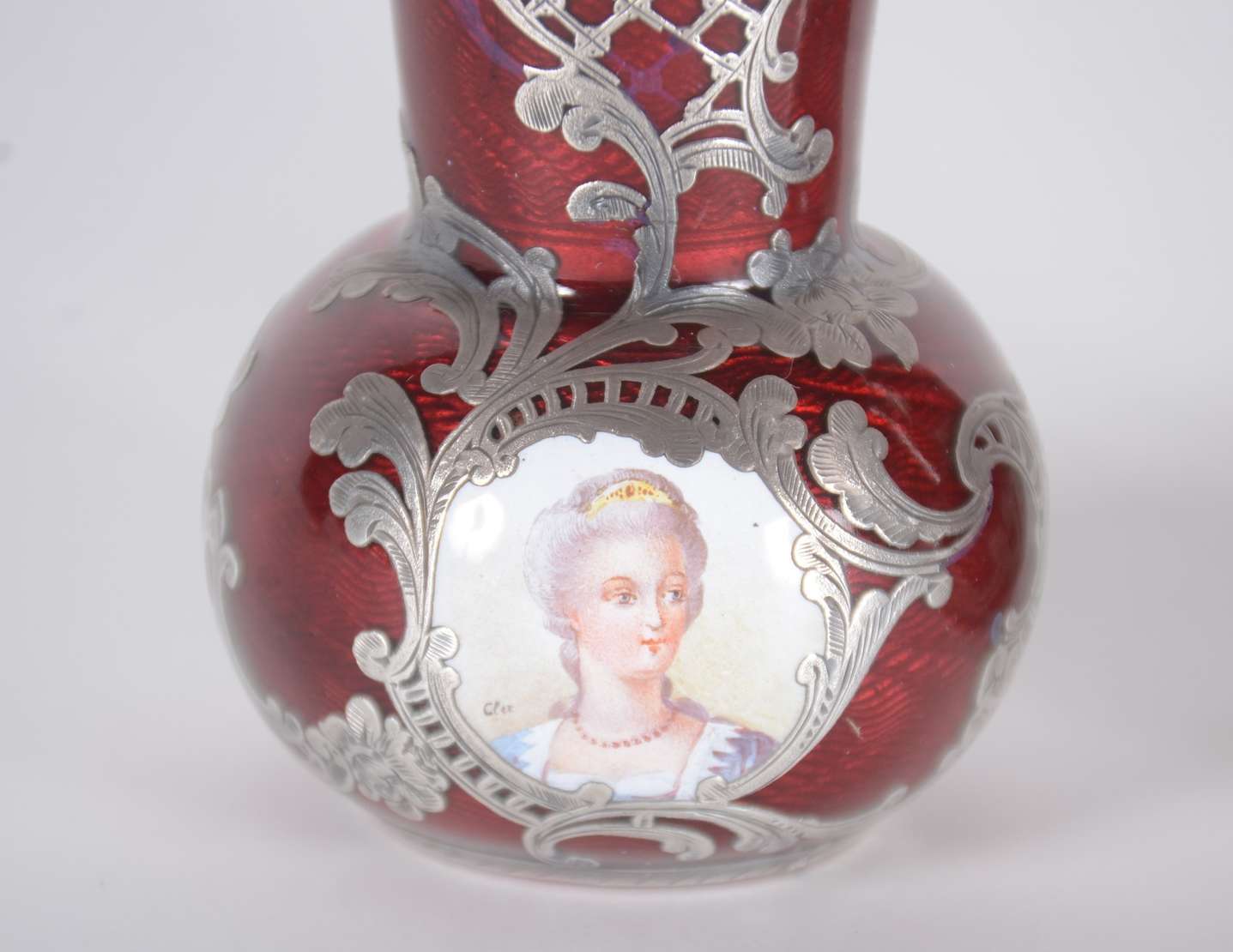 Três peças de porcelana, sendo: potiche de porcelana Dom Pedro, na cor bege com figuras figuras femininas realçadas e...