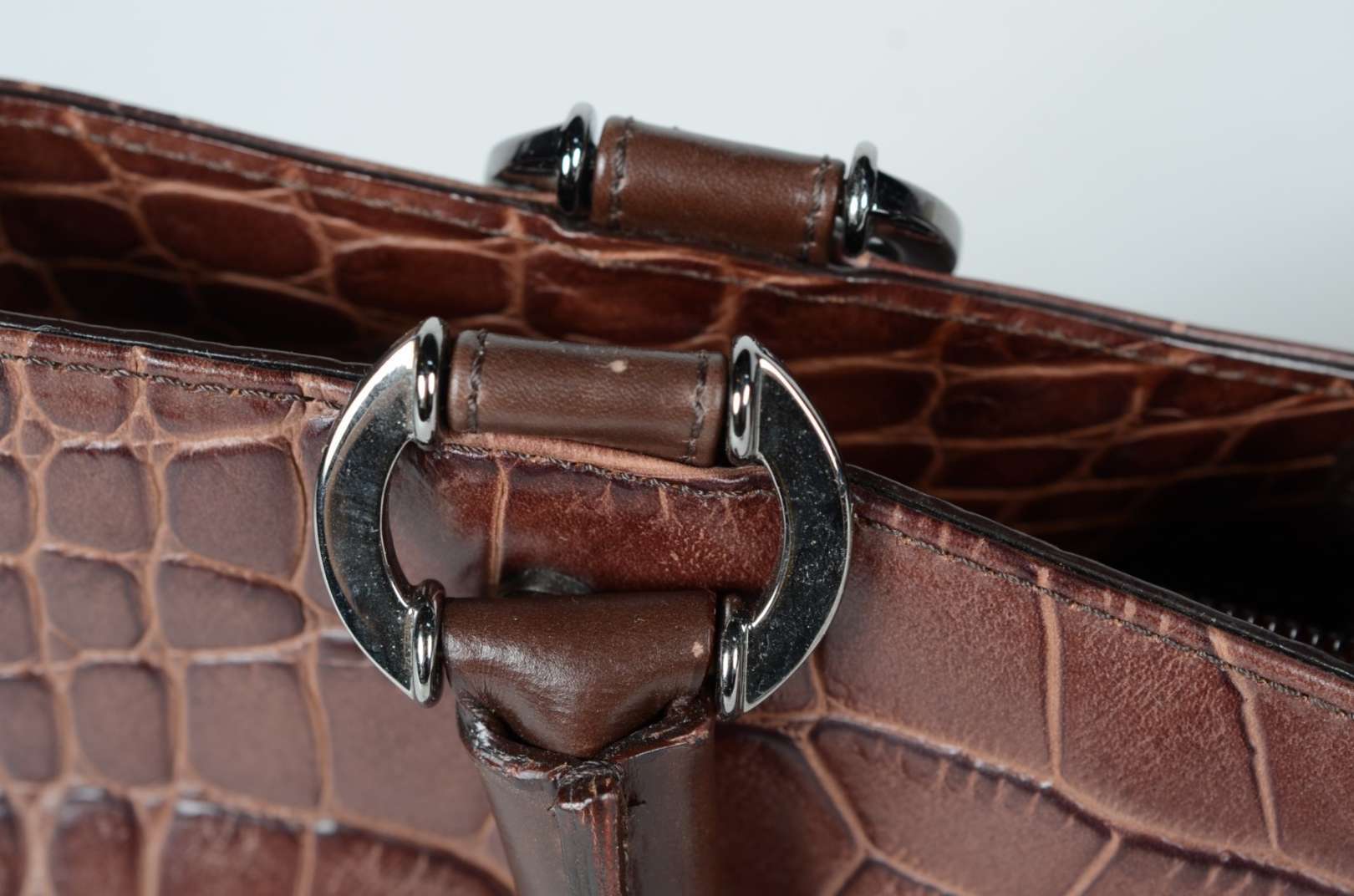 Elegante bolsa feminina em couro com corrente dourada.