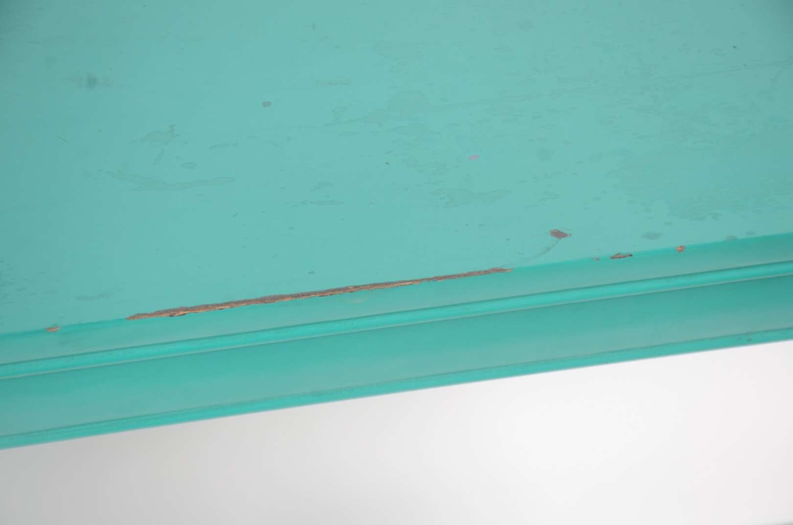 Mesa de centro de madeira nobre, tampo feitio retangular com pintura de flores em policromia. Com desgastes.