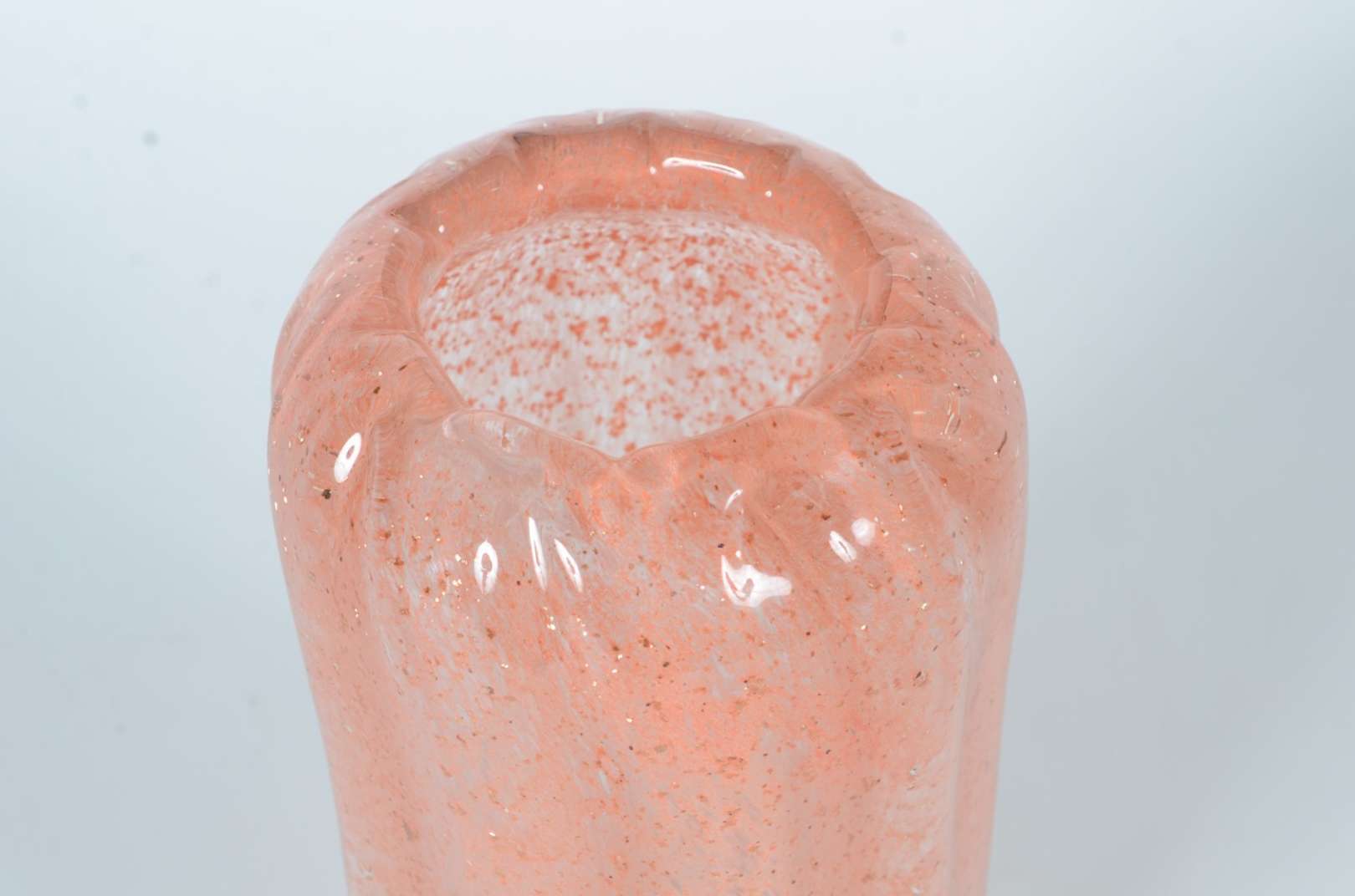 Vaso de vidro Mdina Glass, forma de "cabeça de machado", assinado e datado 1979. Fabricado na Ilha de Malta, mar medi...