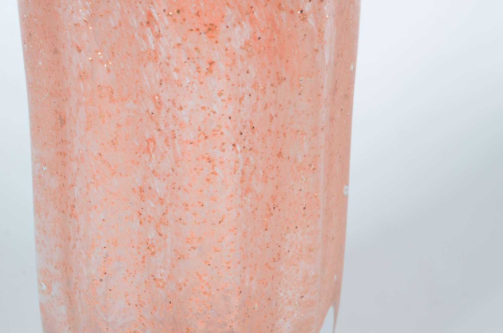 Vaso de vidro decorativo na cor esverdeada com pasta em relevo, borda trabalhada.