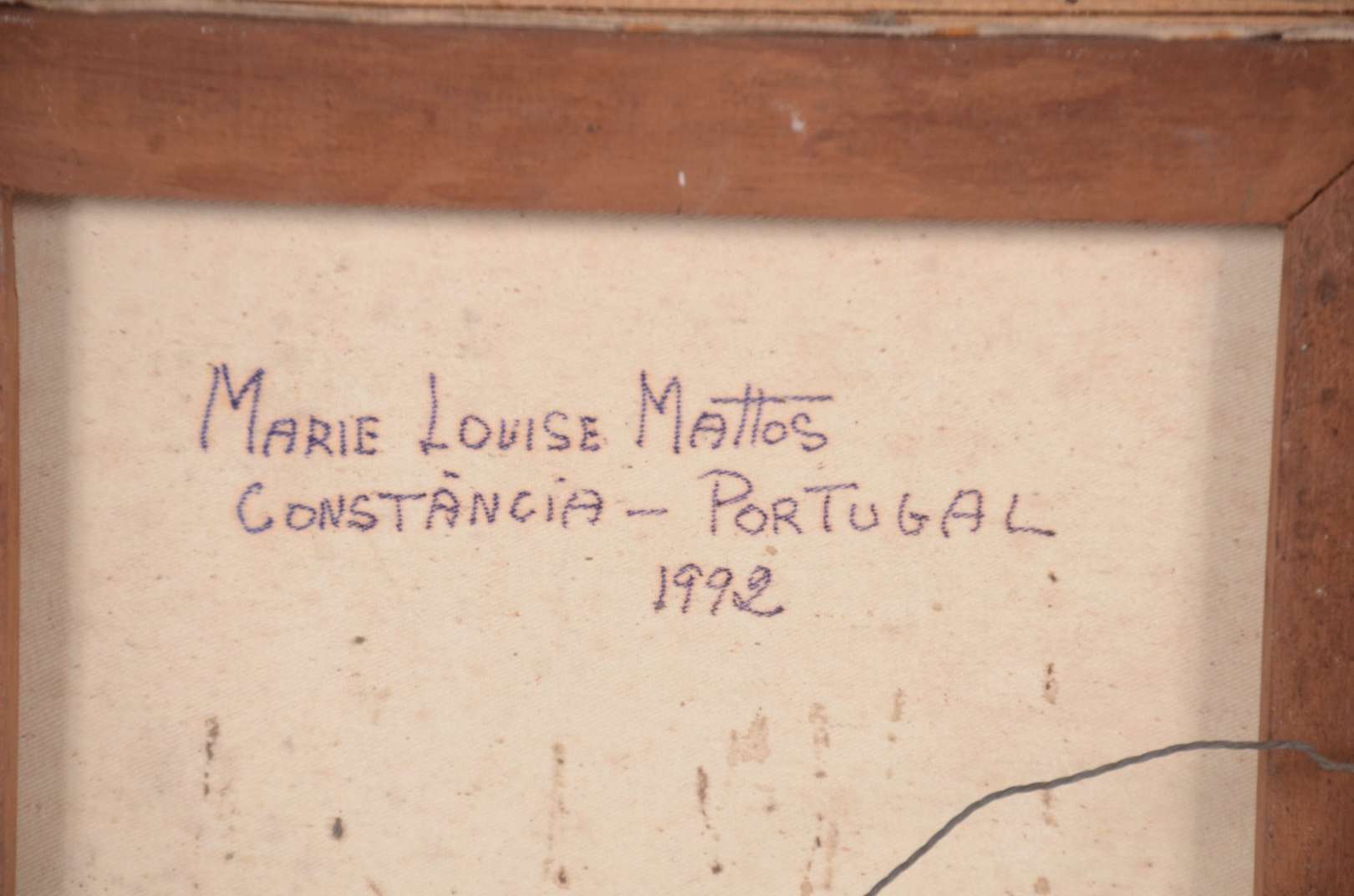 Óleo sobre madeira. Moldura com cupim.