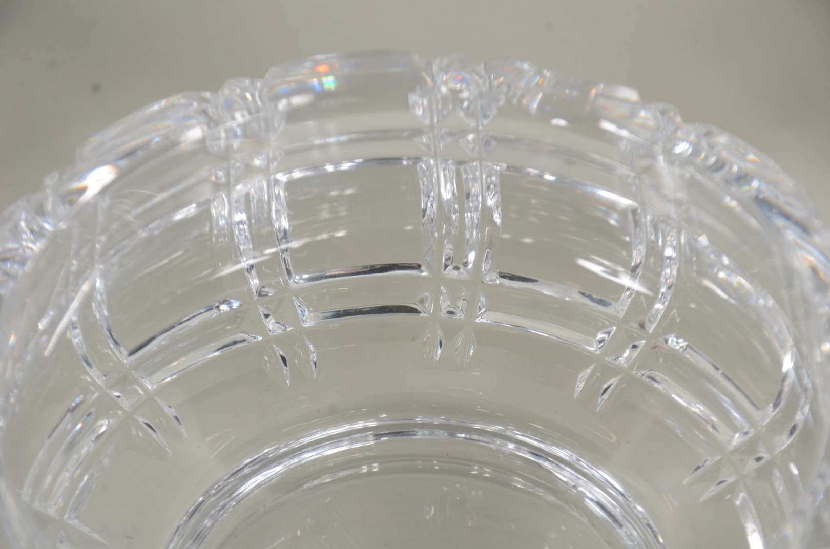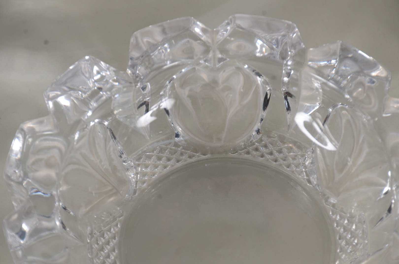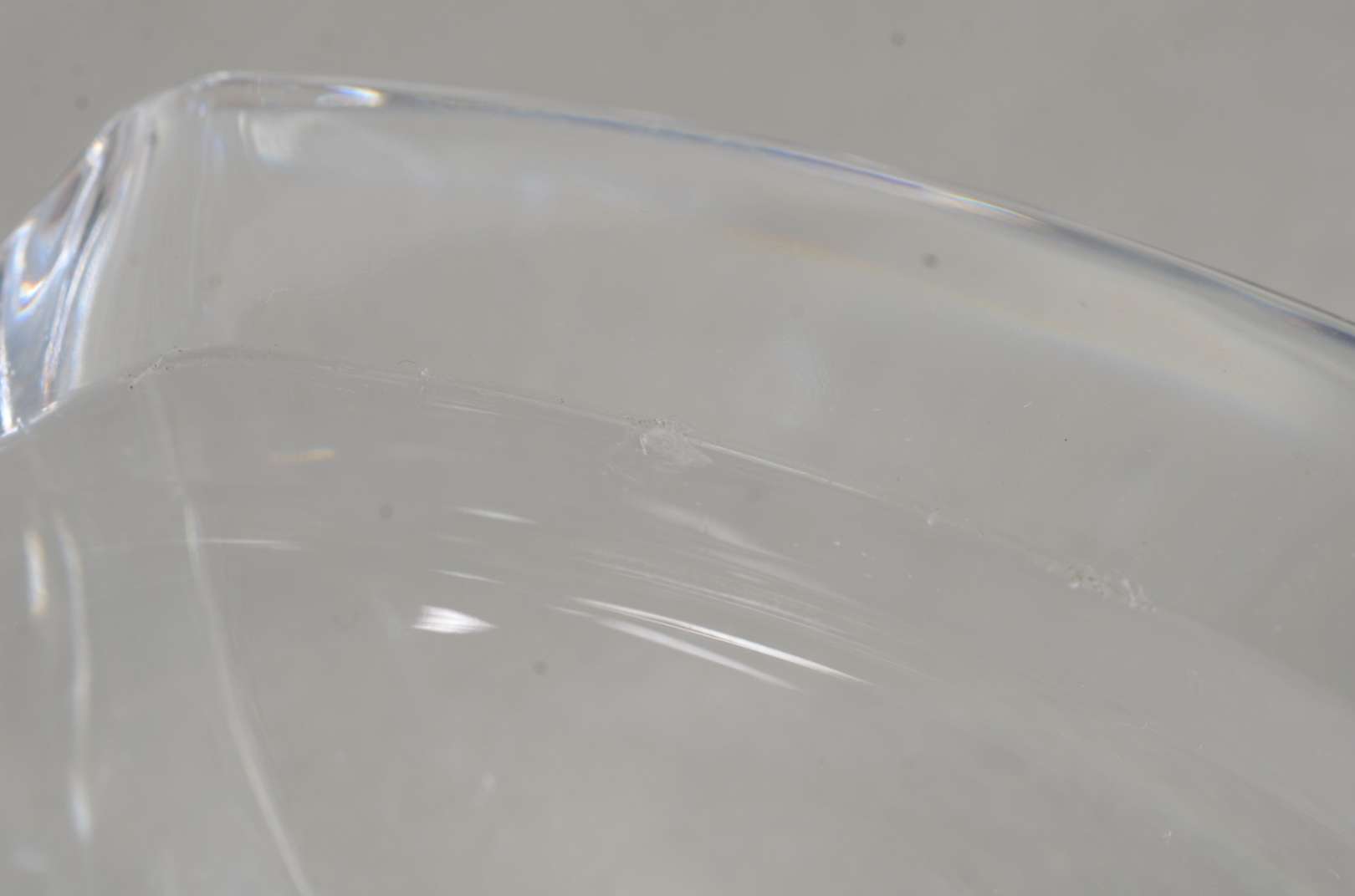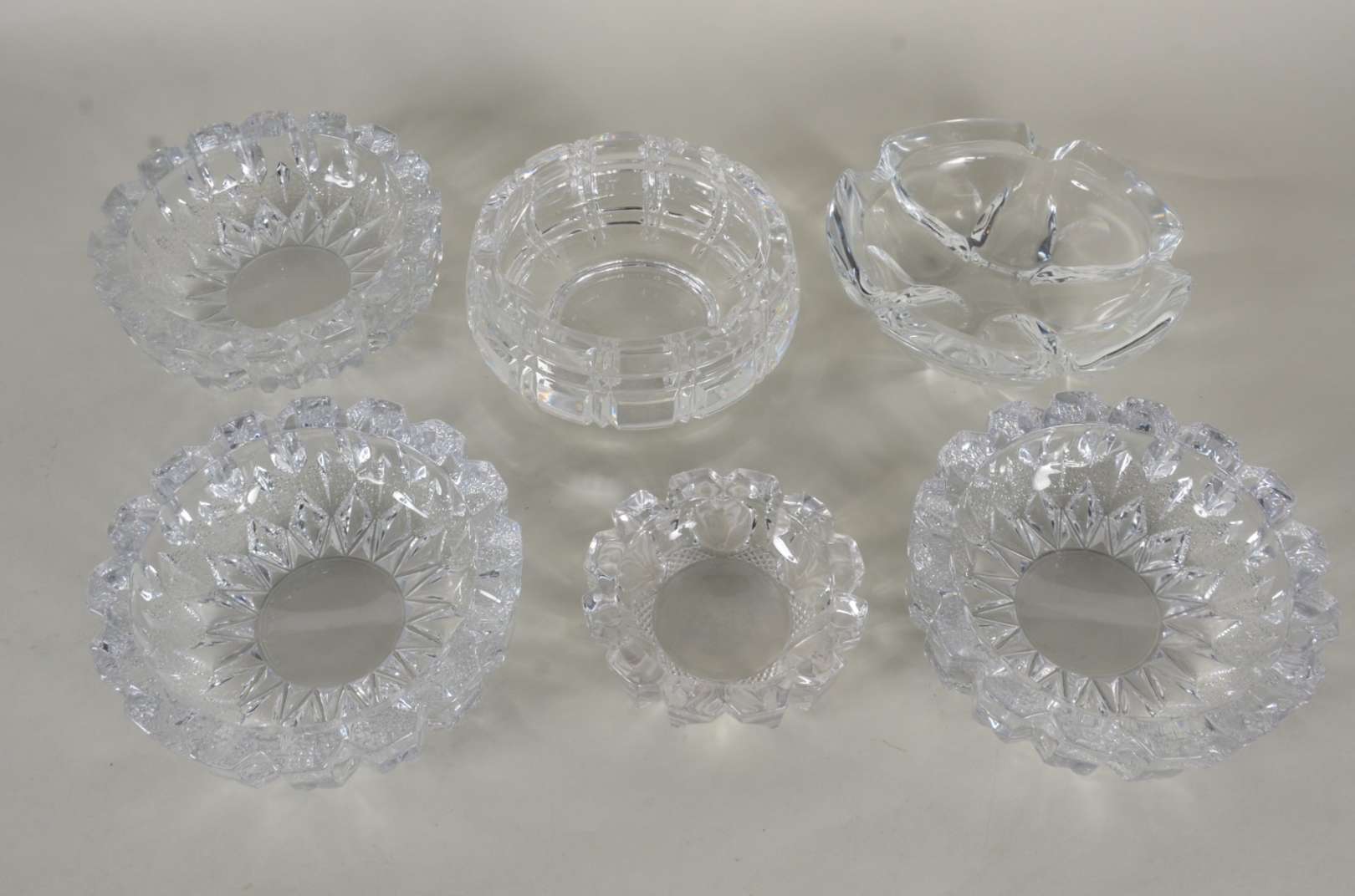 Seis frascos de cristal com tampas de prata com inicias J.H. (um frasco com borda quebrada). Peso das tampas de prata...