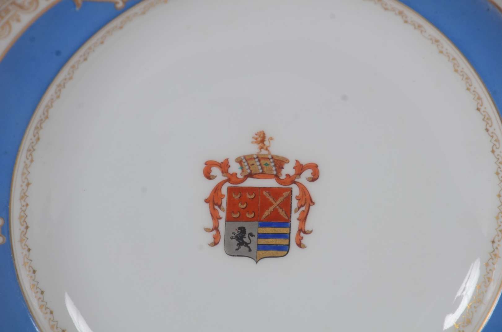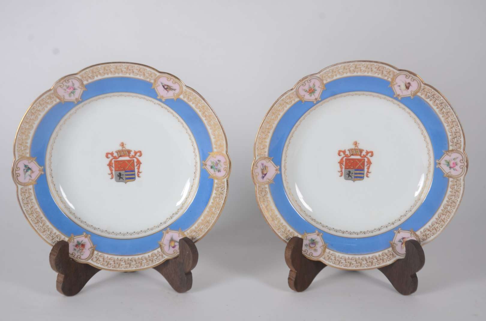 Par de pratos fundos brasonados de porcelana francesa. Peça do serviço fotografado na página 322 do livro da Aristocracia no Brasil de Jenny Dreyfus.