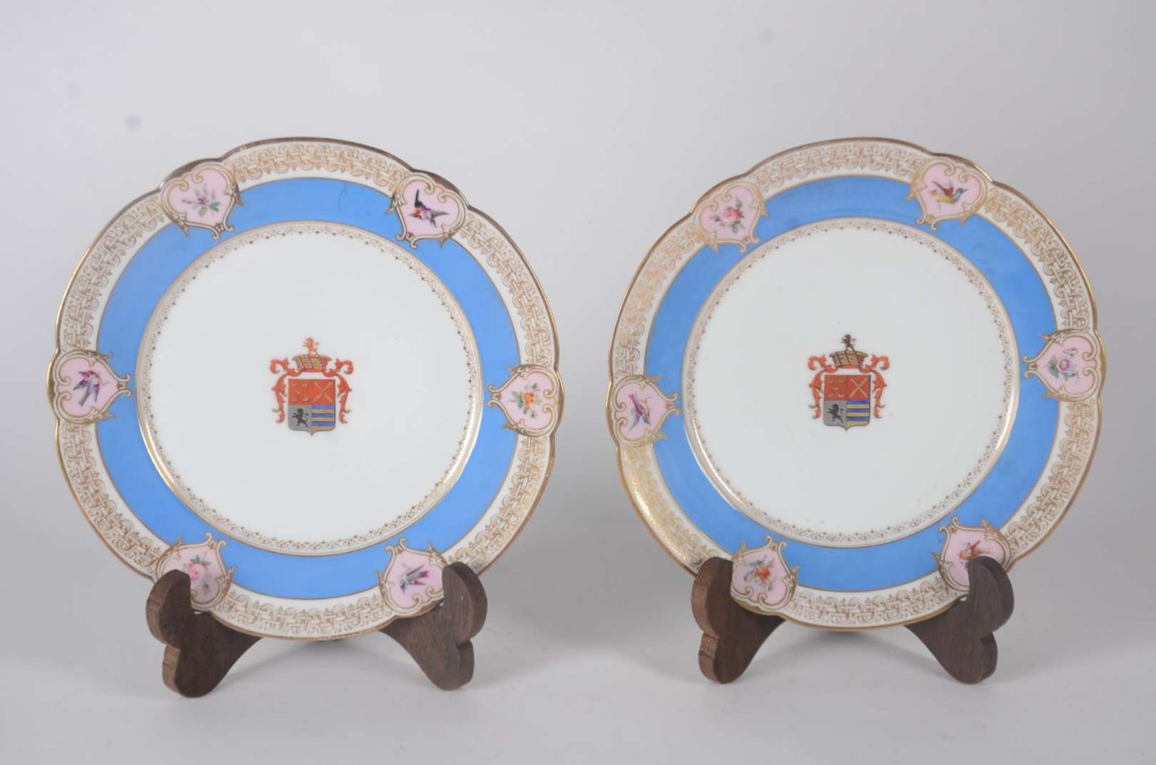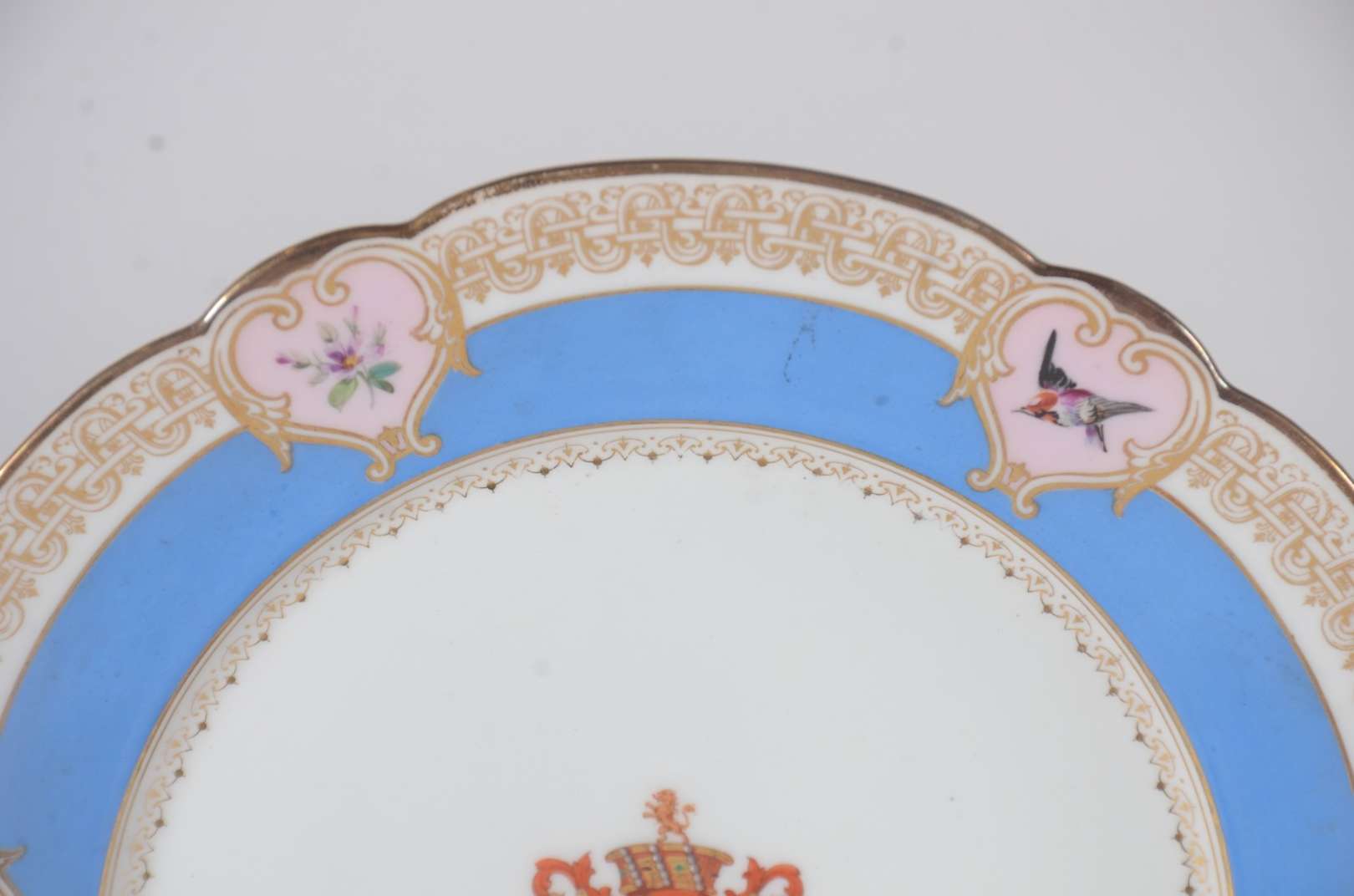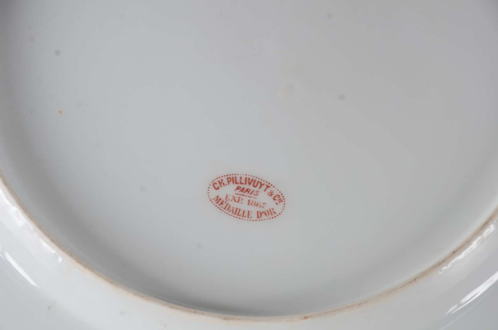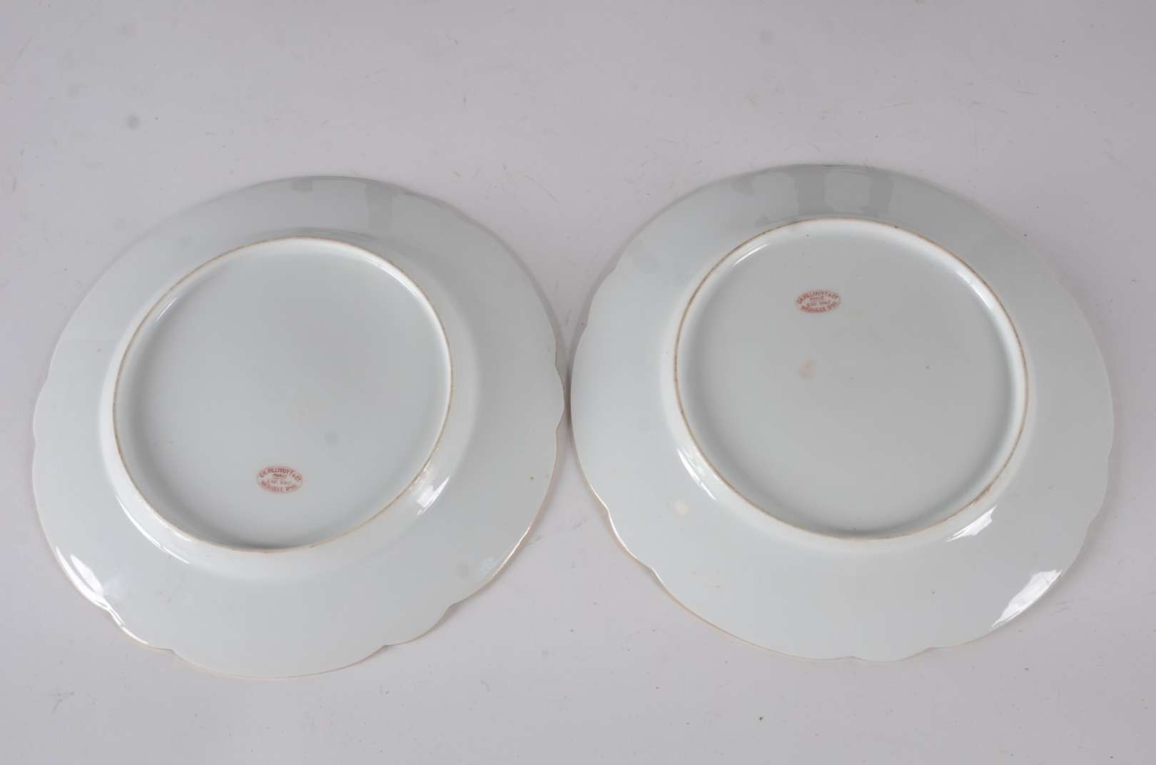 Antigo prato de porcelana chinesa policromada, parte posterior com flores e símbolo na cor rosa. Mínimos bicados.