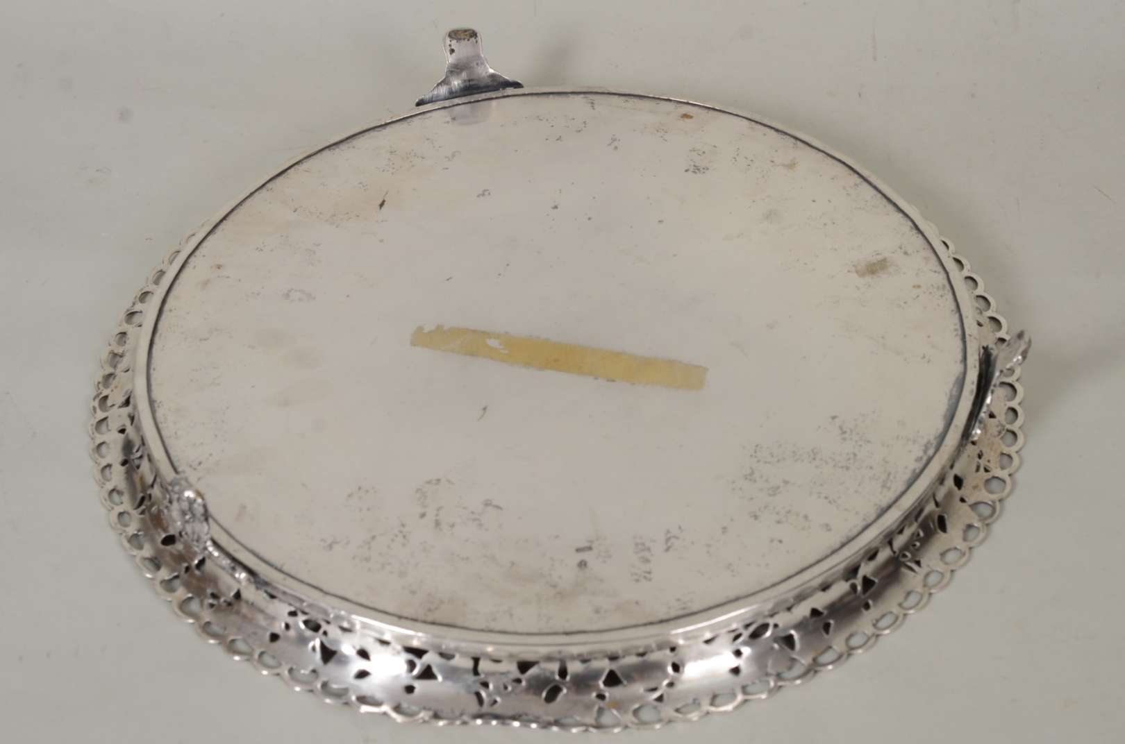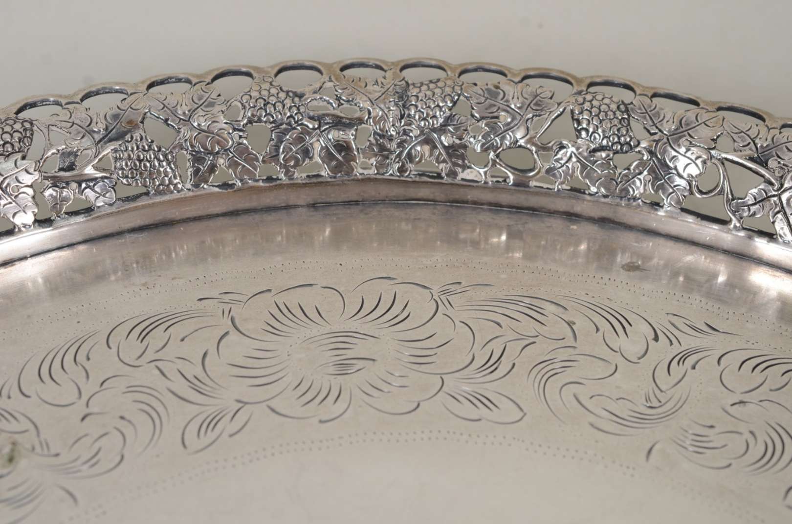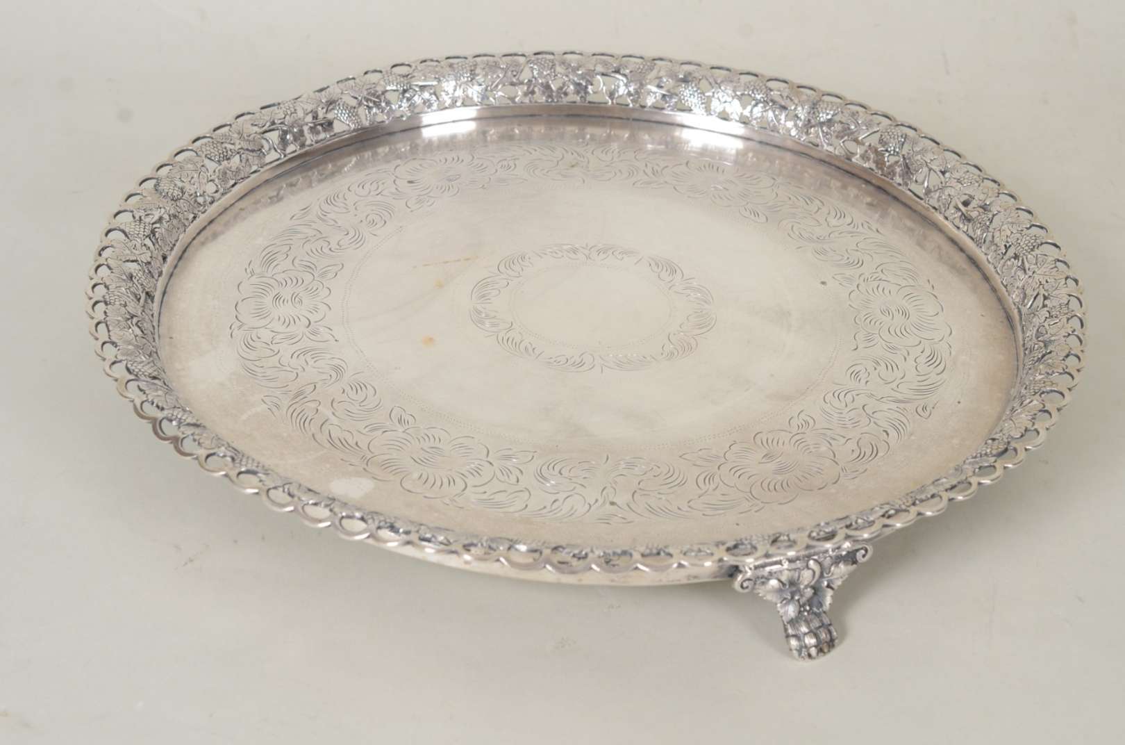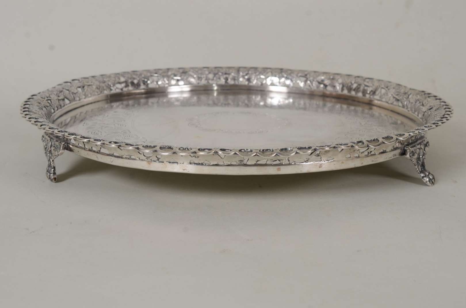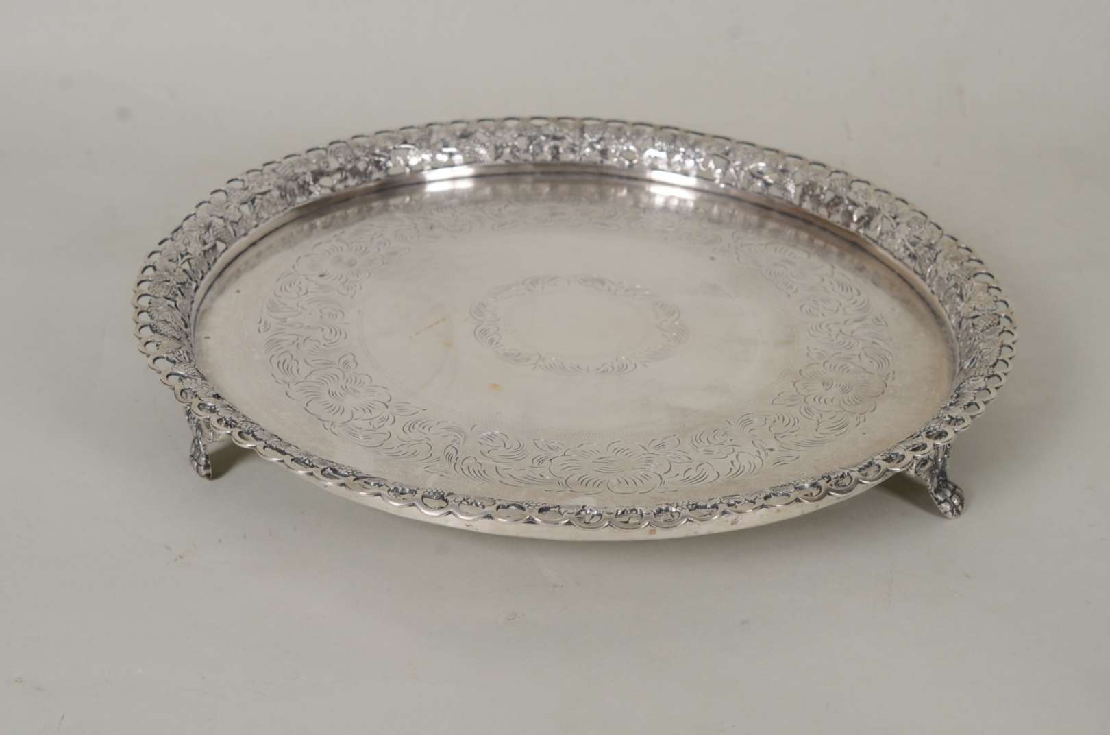 Salva de prata, fundo cinzelado, contraste 833 mls. Peso da prata: 1500 g. (Por motivos de segurança a peça não se encontra na loja)