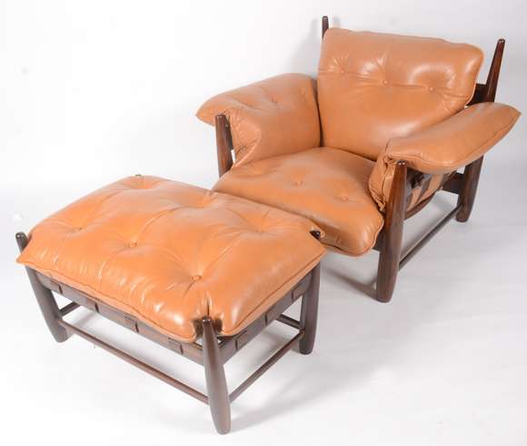 Poltrona mole com estrutura em jacarandá maciço torneado com travessas que permitem a passagem de percintas em couro-...