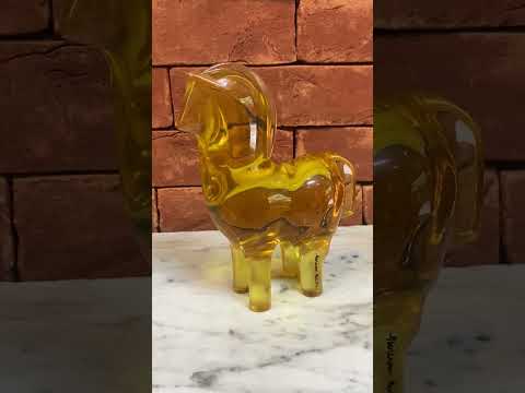 Quatro esculturas representando tartarugas de vidro decorativo, pó de ouro.
