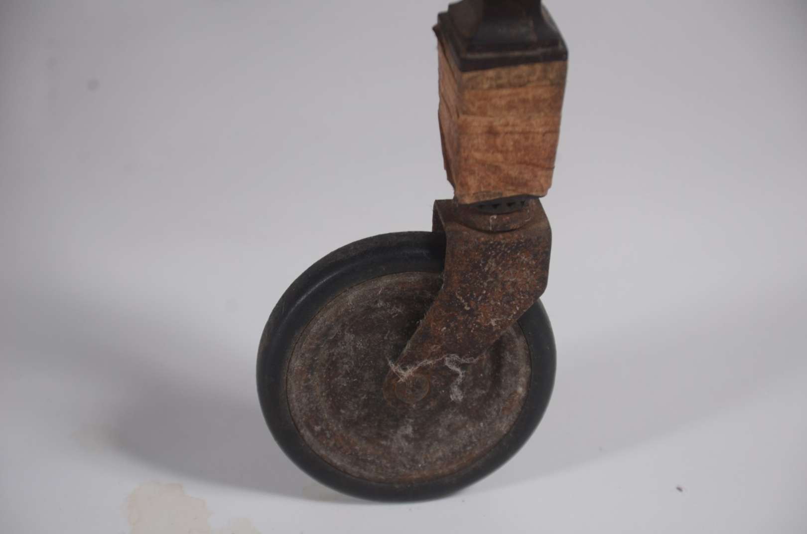 Baú de madeira clara, bordas trabalhadas com pequenos gomos, ferragens aparentes. Bordas com partes faltantes e desga...